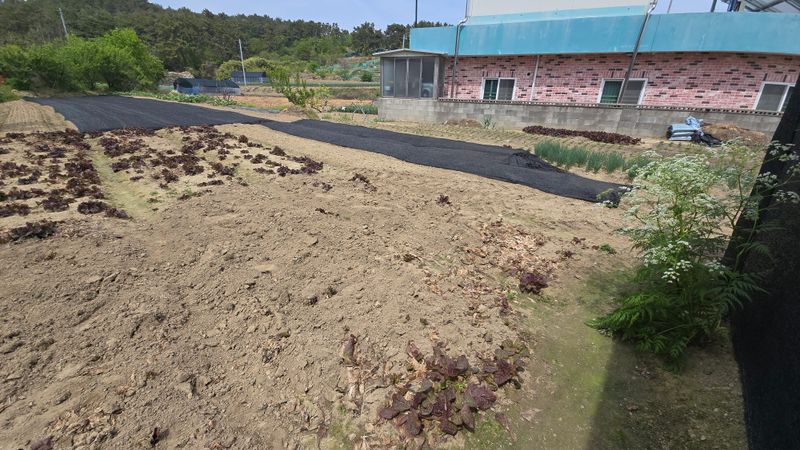 4고랑 경운, 적상추 파종, 차광막 설치. 퇴비 4포, 밑거름 10kg 살포.