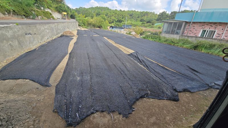 퇴비 78포, 밑비료 3포 살포 후 경운 촉파 심기 3고랑, 적상추 3고랑 파종. 차광막 덥기