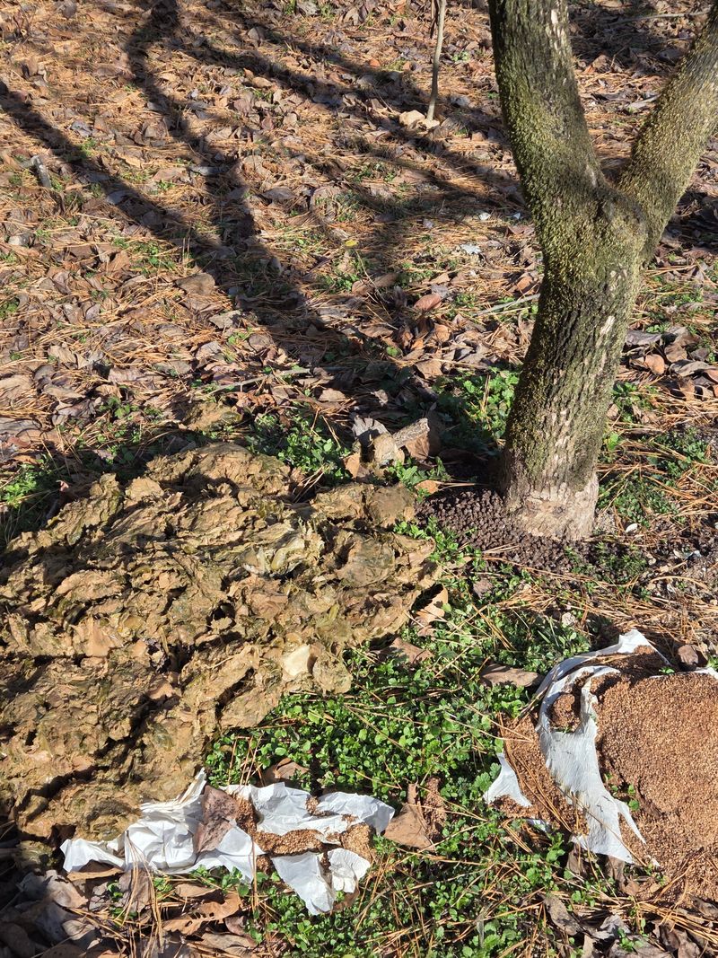 고찌꺼기싹힌것 감나무아래에 뿌려주기