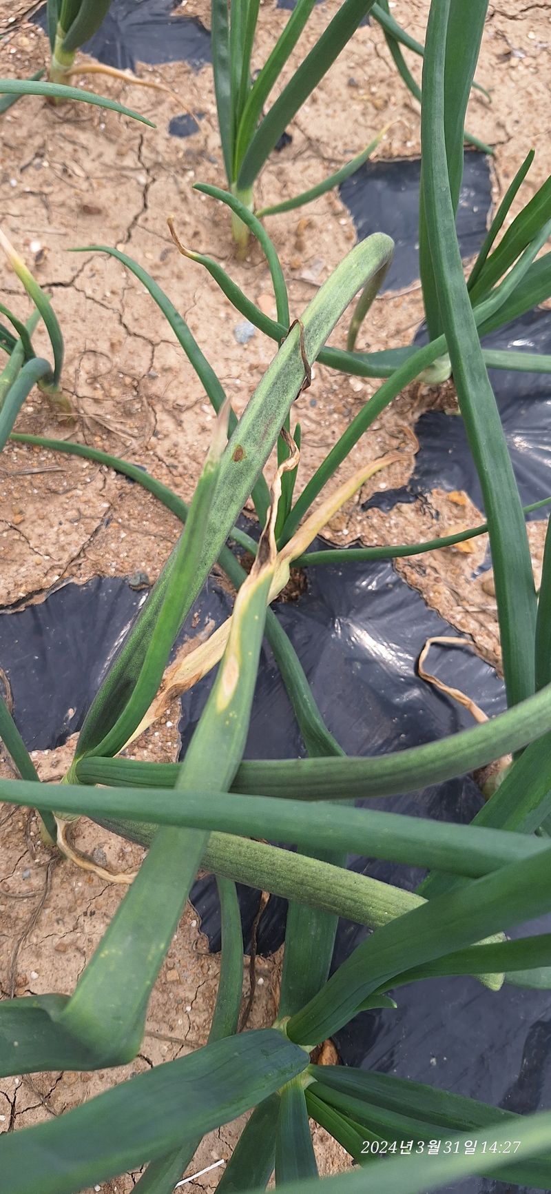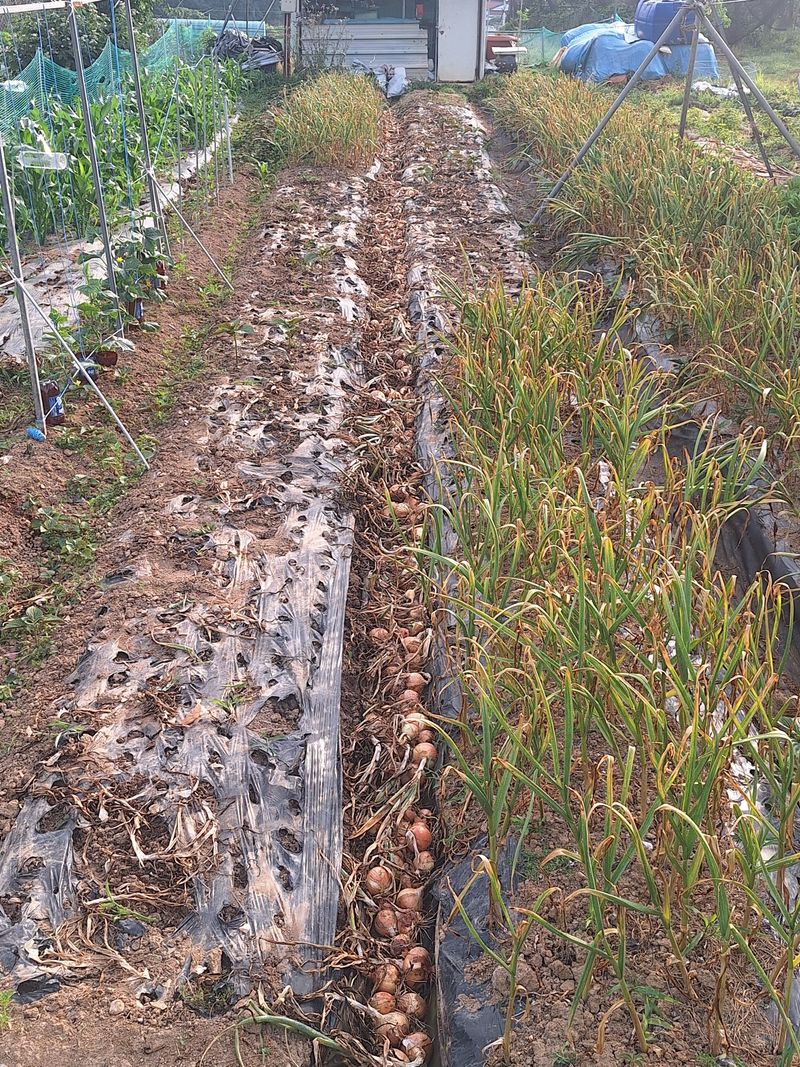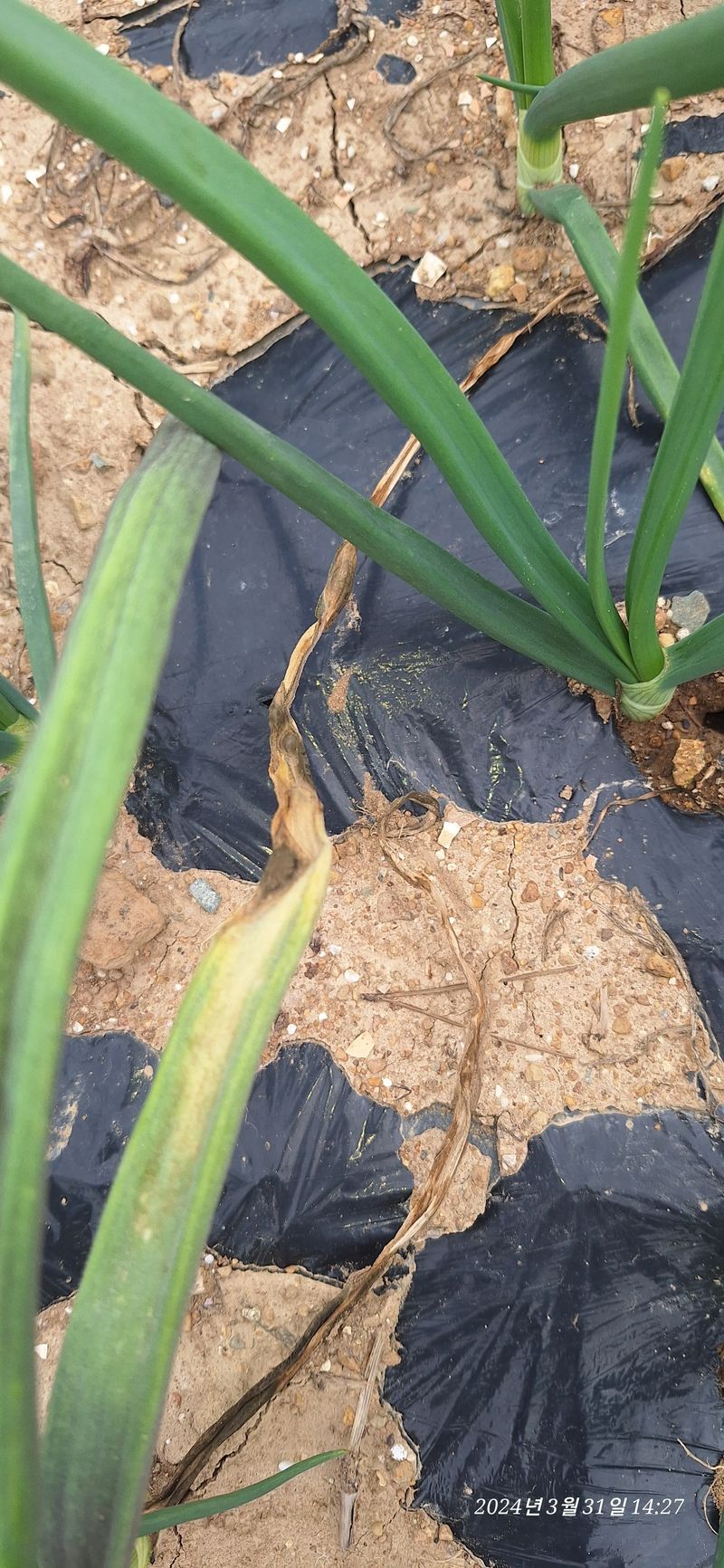 양파에 검은 반점 노균병 보여서 유기농 약제 다싹.전착제 섞어서 양파.마늘 전부 방제 작업