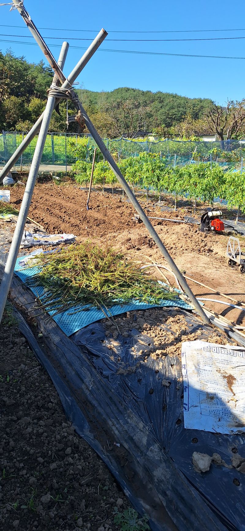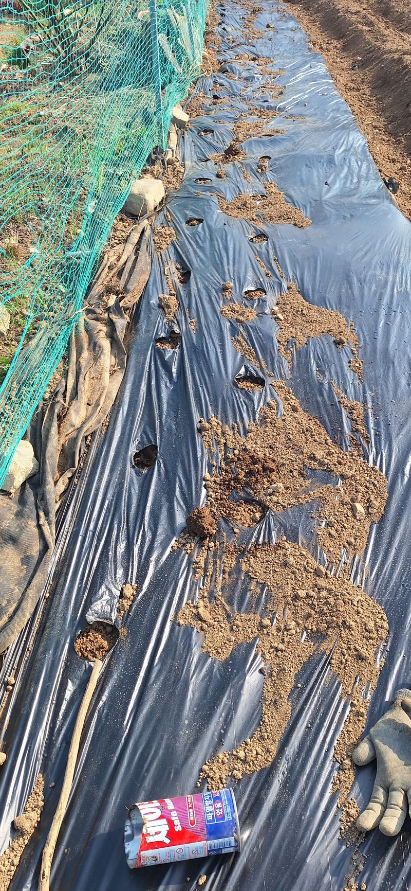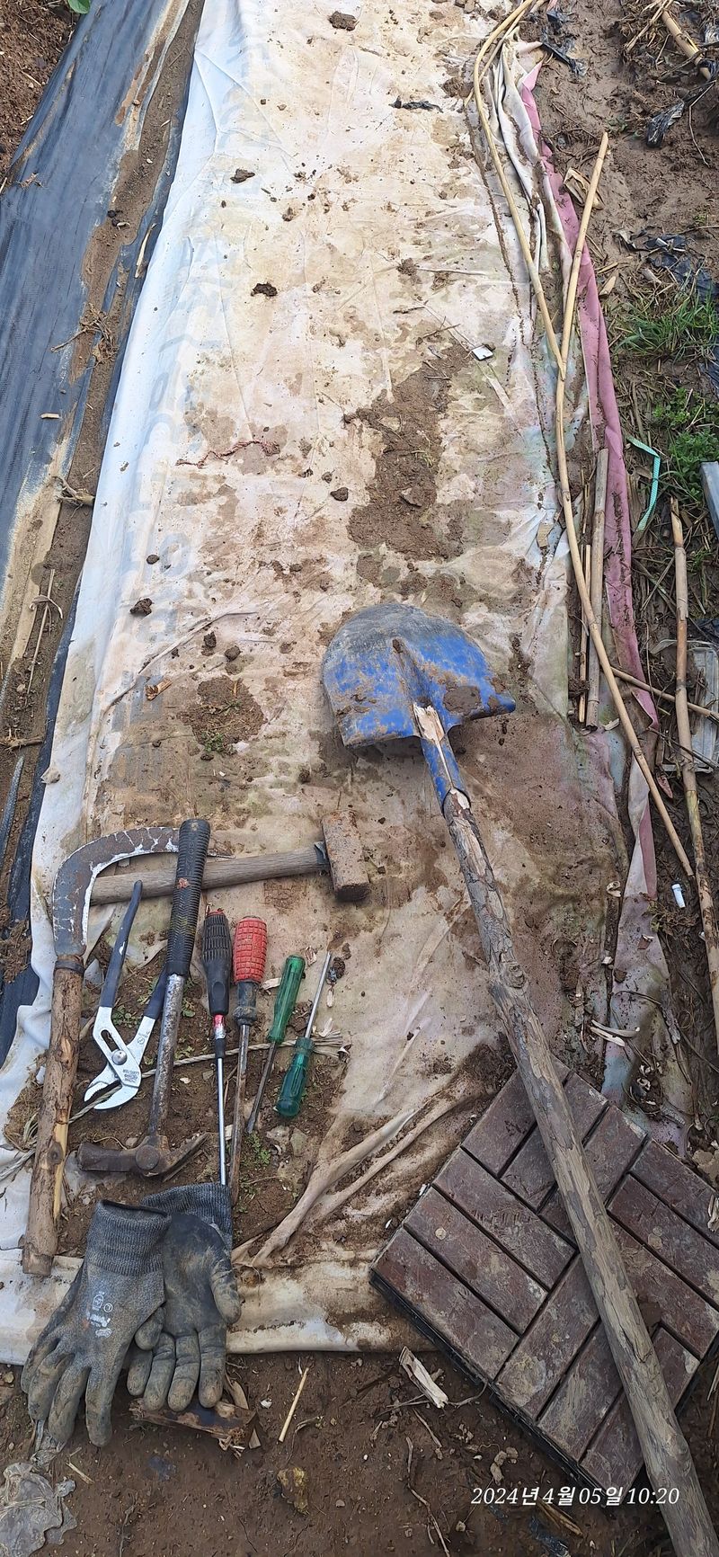 친척 밭 고추모종 500포기 정식 도와드림.물주기 16mm 엑셀 파이프 터진거 교체 및 보온재 씌움 굵은 땡초 5포기 정식. 가시오이 2개, 조선오이 2개, 참외 2개 , 접목 수박 2개, 맷돌 호박 2개 , 애호박 2개 정식