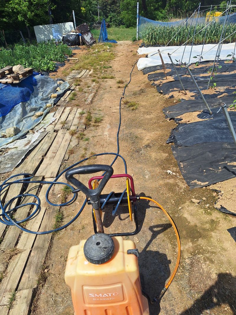 계량기 지주대 보강작업 및 삼일전기 업체 공시 다녀감 고추 및 밭에 유기농 영양제랑 살균제 뿌림