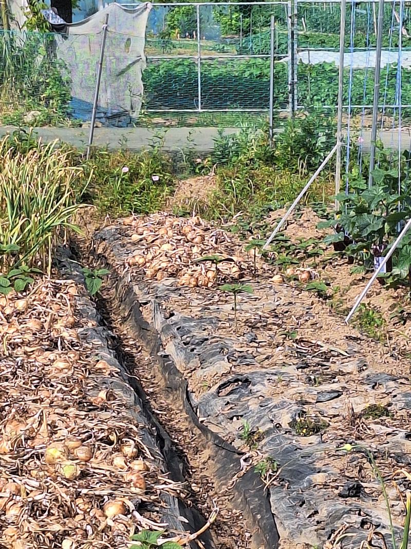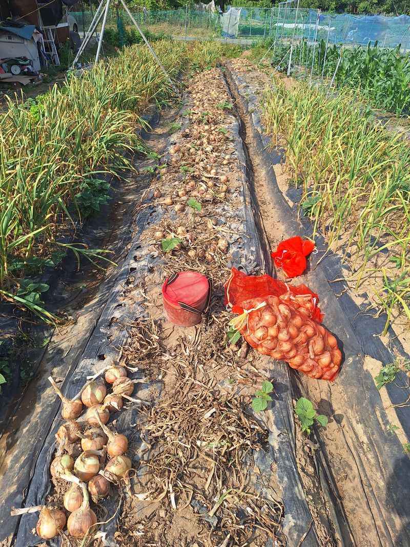 잎 들깨 솎아내기 및 양파 수확 한 두둑으로 옮겨 심기