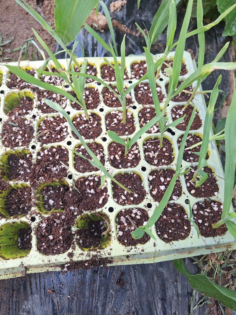 초당 옥수수 100립 포트에 키움. 84개 발아해서 밭에 옮겨 심음