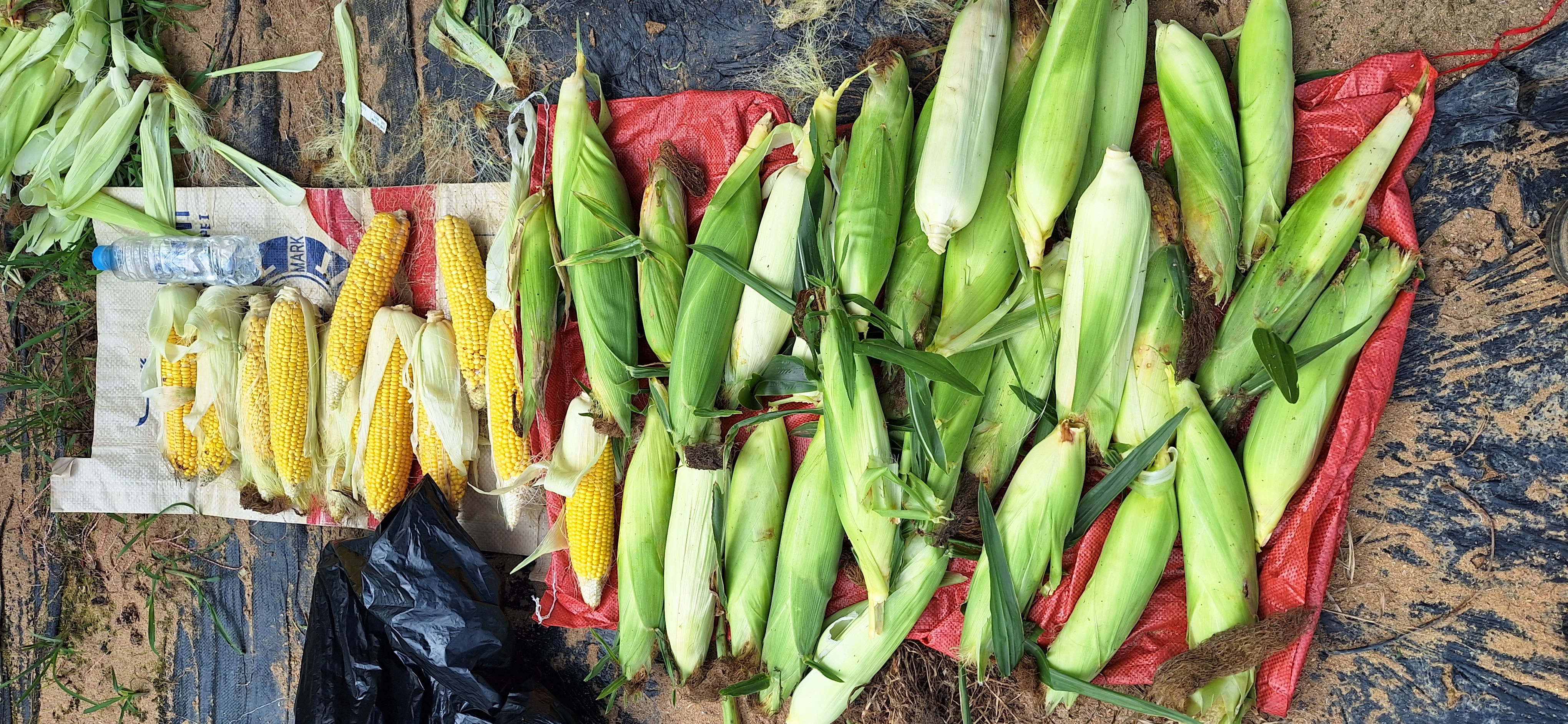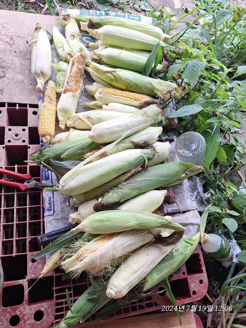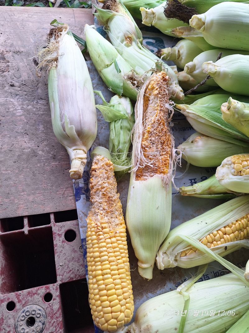 초당옥수수 수확 20cm 이상 사이즈 나옴 벌레랑 새가 쪼은거 꽤 있음