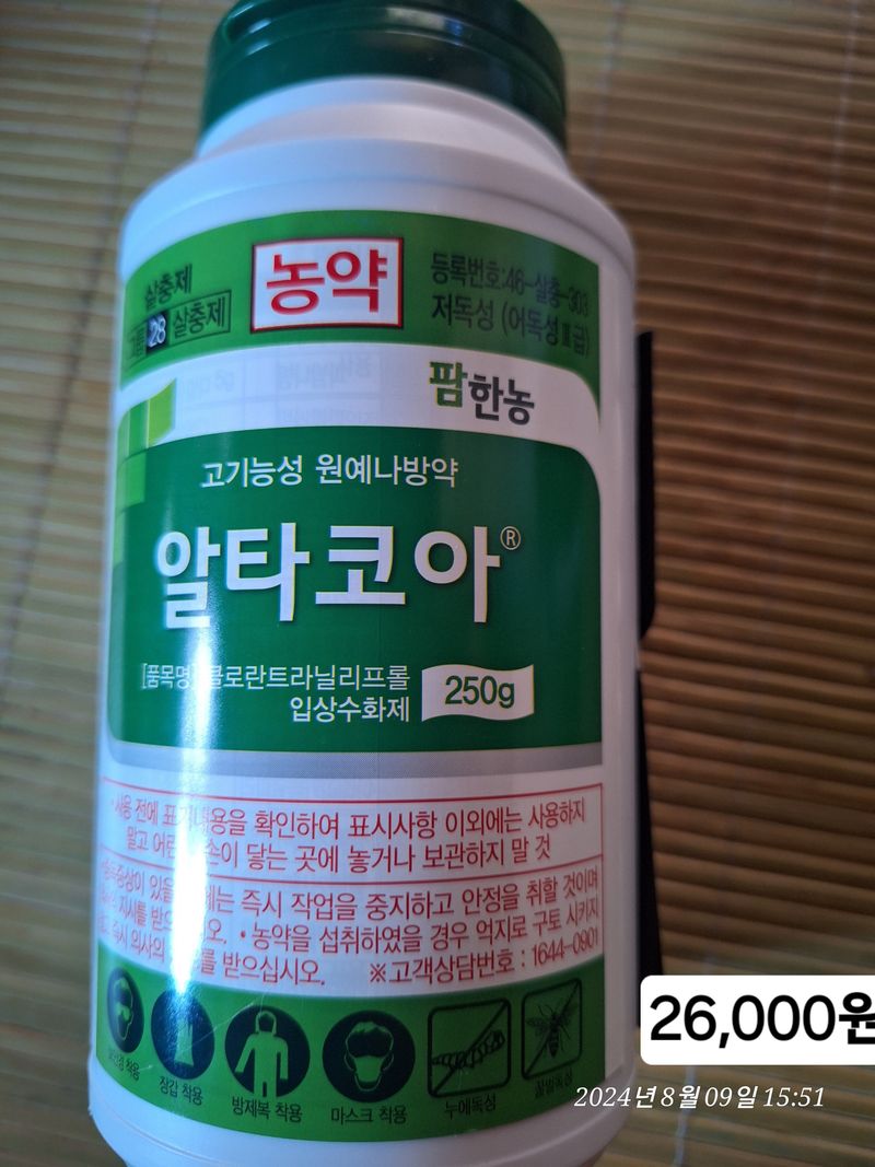 잎들깨 잎에 구멍나고 성장순 잘라먹어서 알타코아 구입 후 10g+물 20L 방제 감나무.옥수수.들깨,고추에 담배나방 등 각종 나방류 및 여러 작물에 적용 가능한 농약이라 구입..