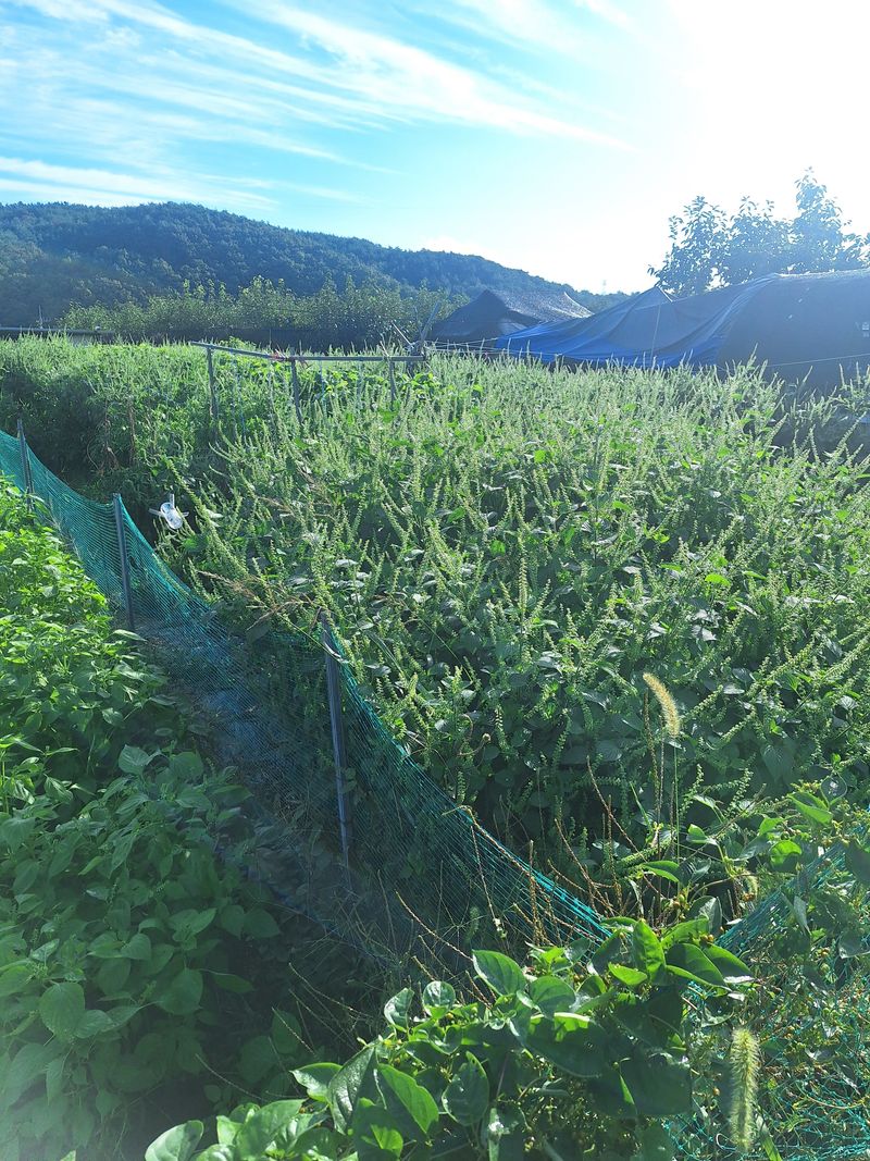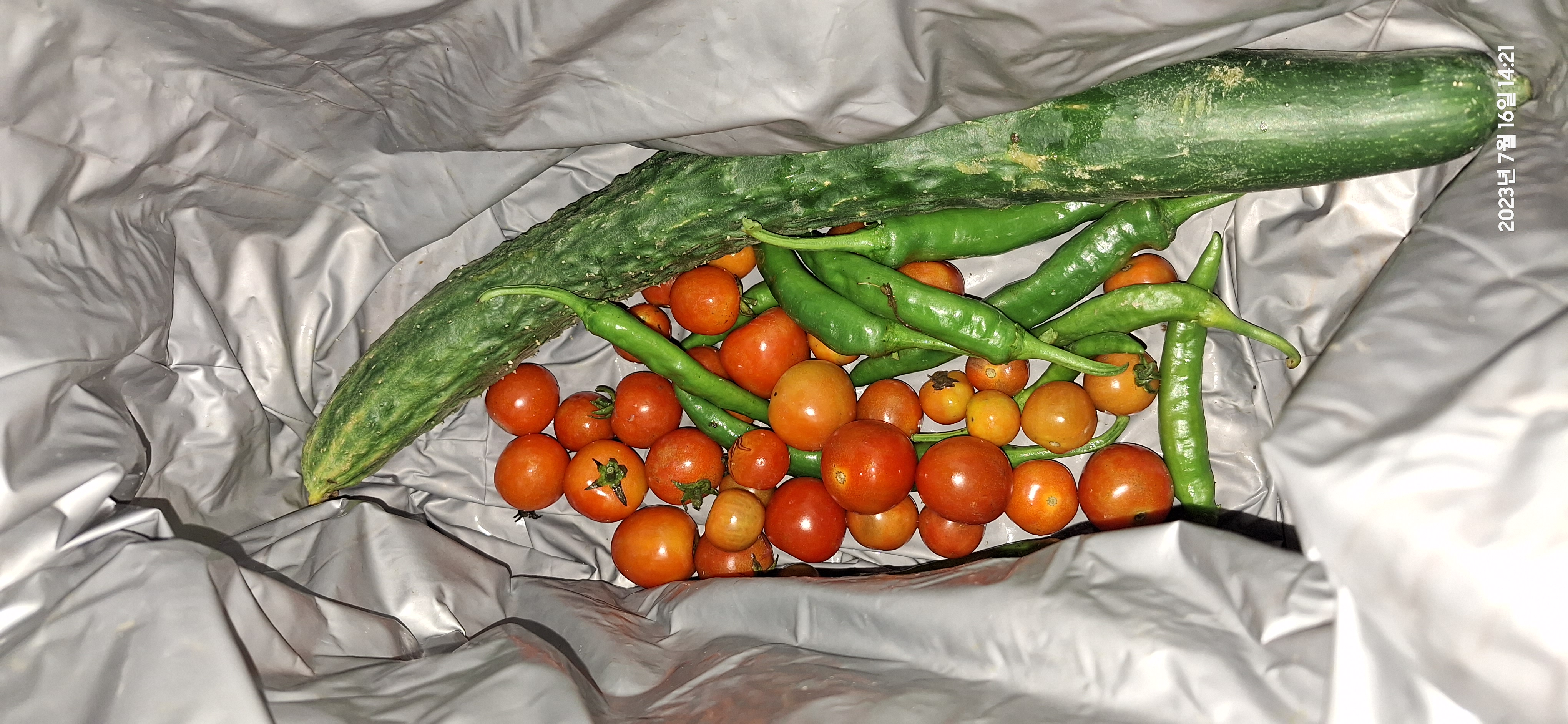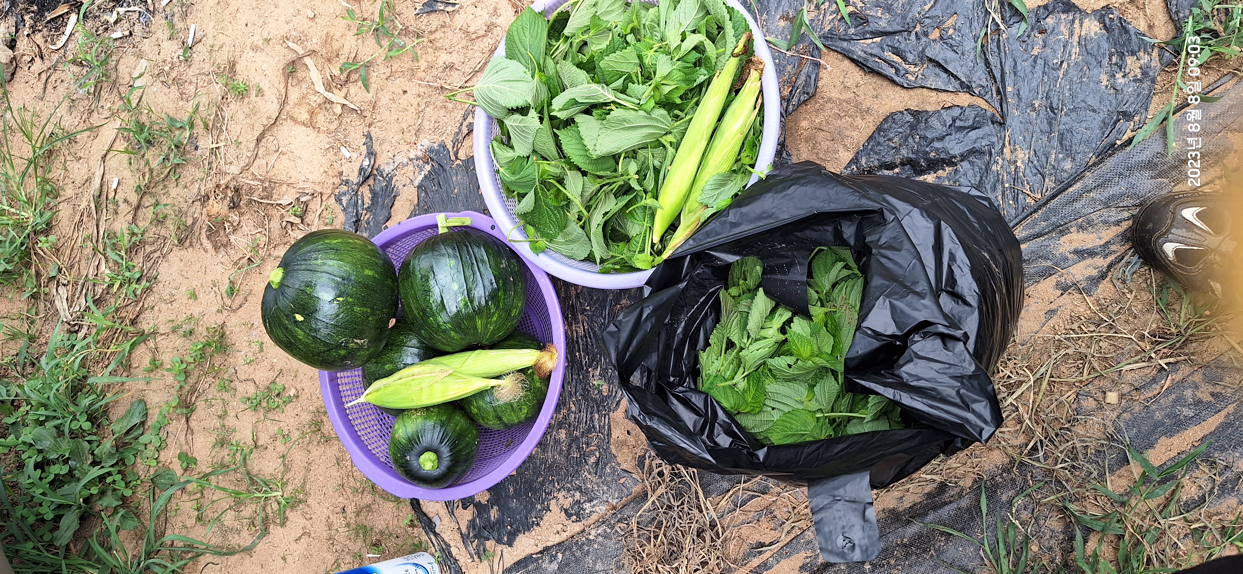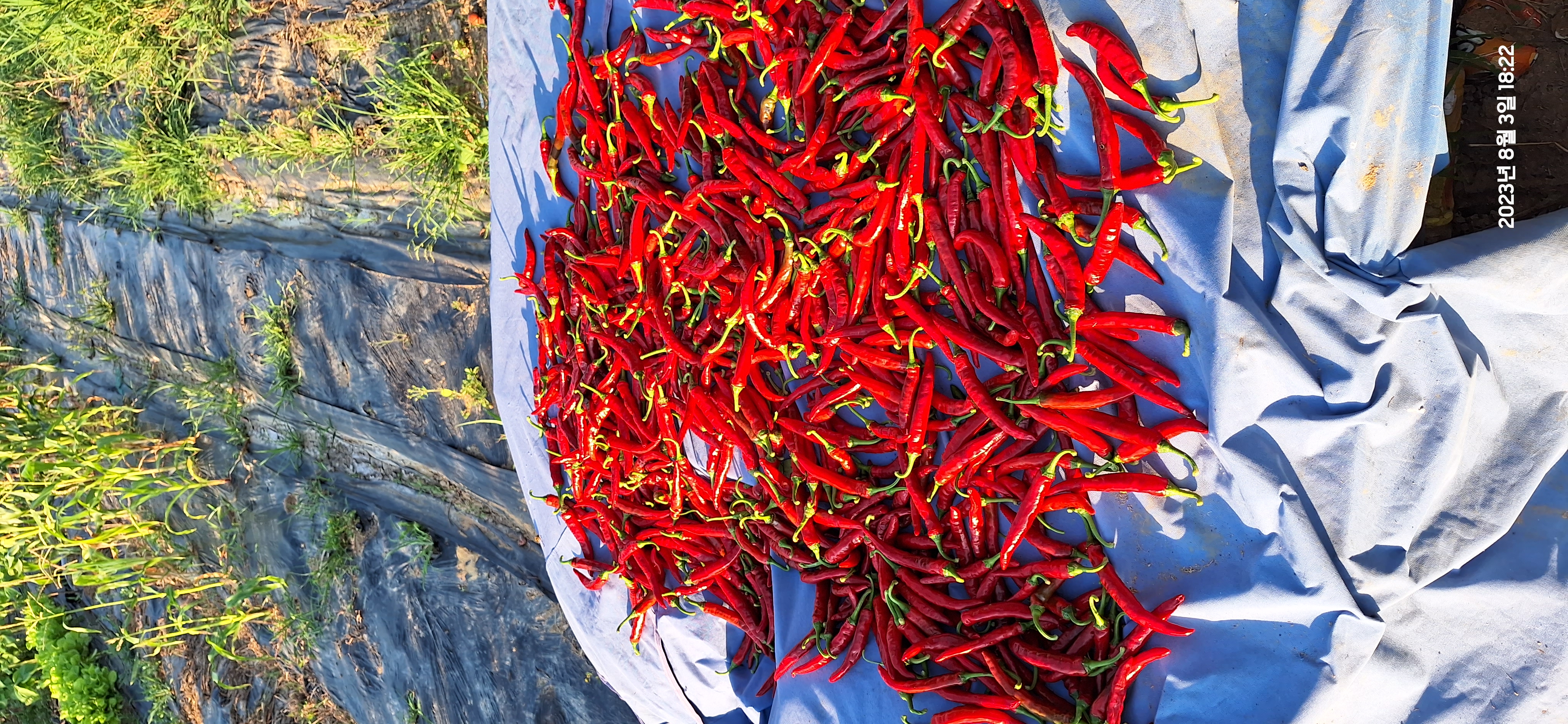 땡초 홍고추 5Kg 수확.초당옥수수 고랑 정리 . 멧돼지 피해로 주변 밭 피해. 농작업하는 사람이 있음에도 고라니가 수시로 출몰 해 농막 및 울타리 보수, 수박 2개 수확 1개 무료나눔 ..가시오이 2개 수확