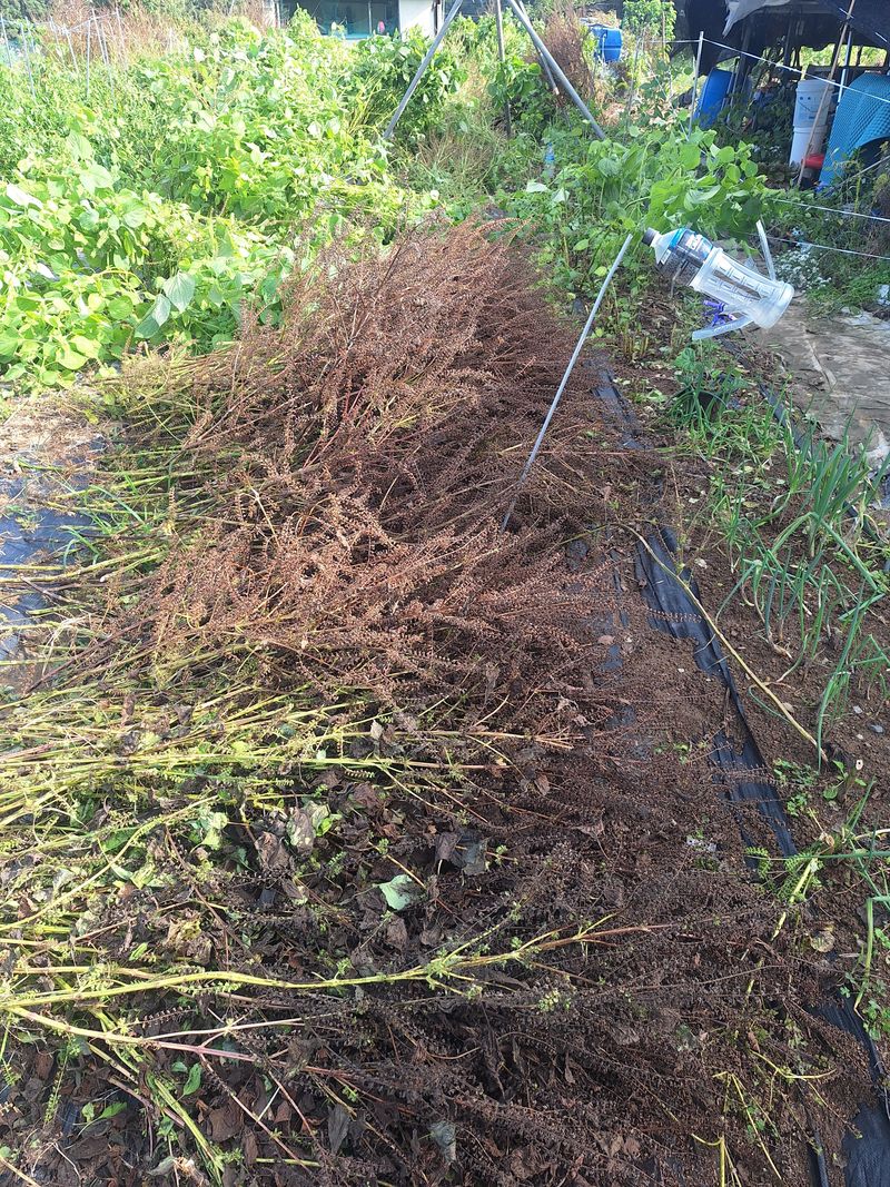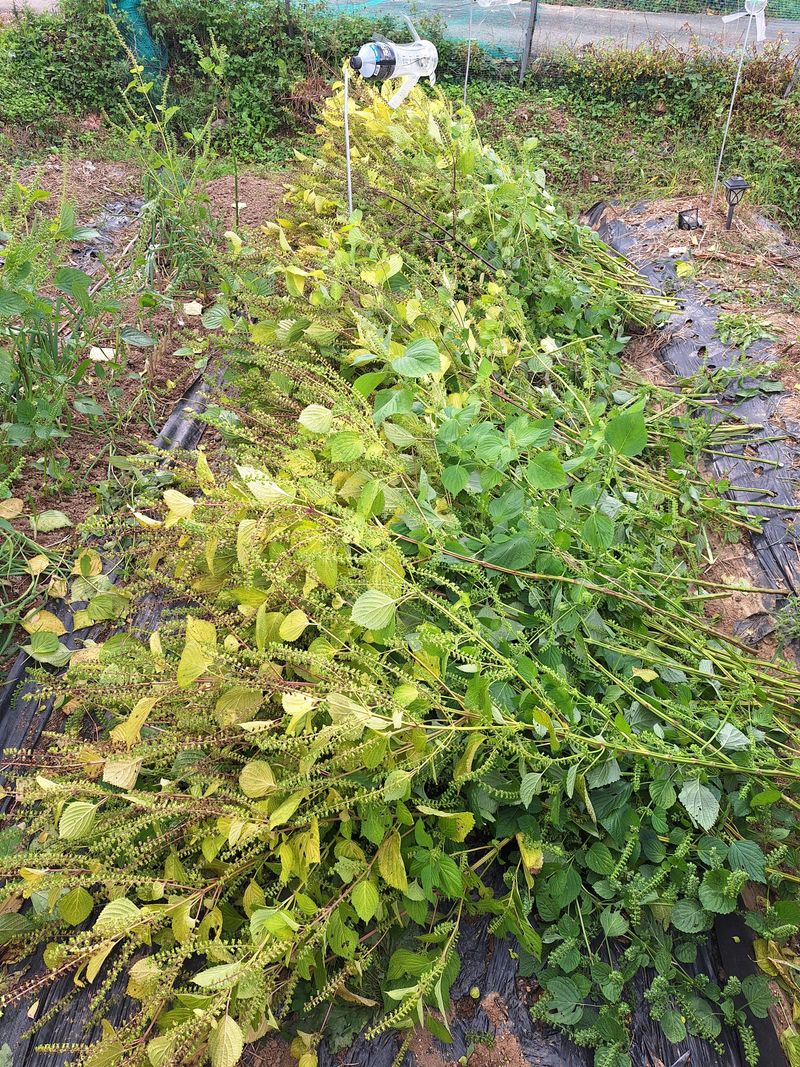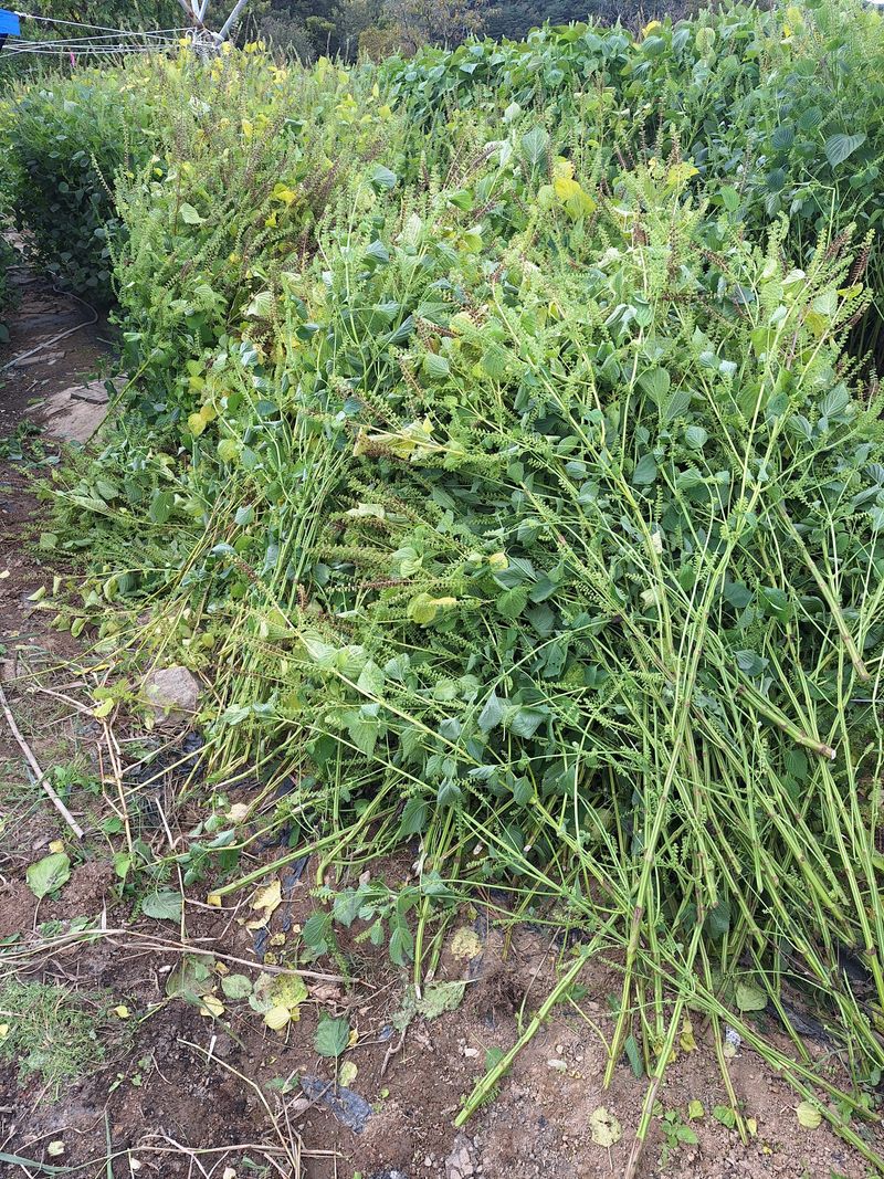 잎들깨로 키우다 양이 많아 들기름 짜려고 키가 크고 이슬 맞아 쳐져서 고추대 박고 고추줄 쳐 줬네요. 1되 1kg 기준 기름집에거 5천원 받고 3kg짜야 들기름 2병 나온다던데 들기름용보다 양은 적게 나오지만 맛은 더 좋다길래 올 해 잎들깨로 들기름 짜보려 합...