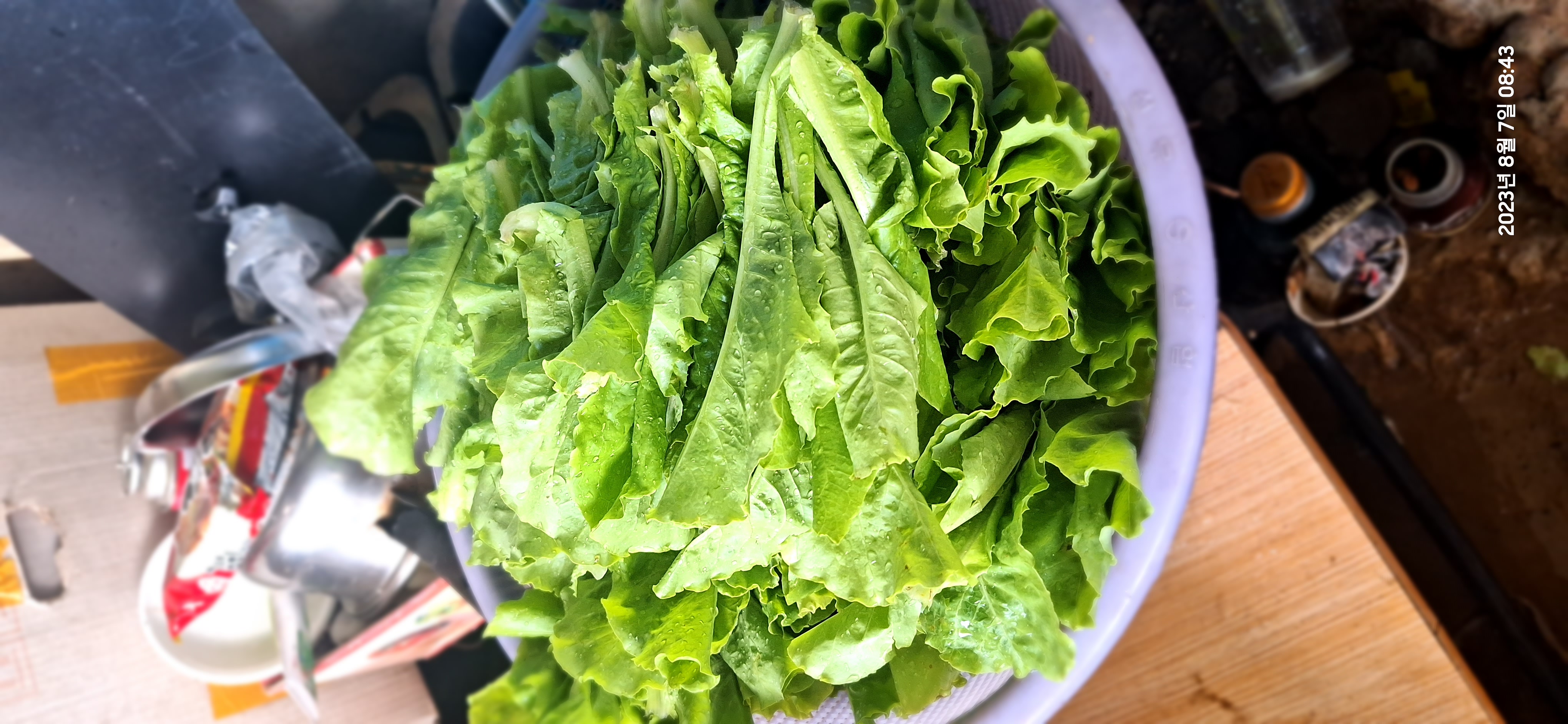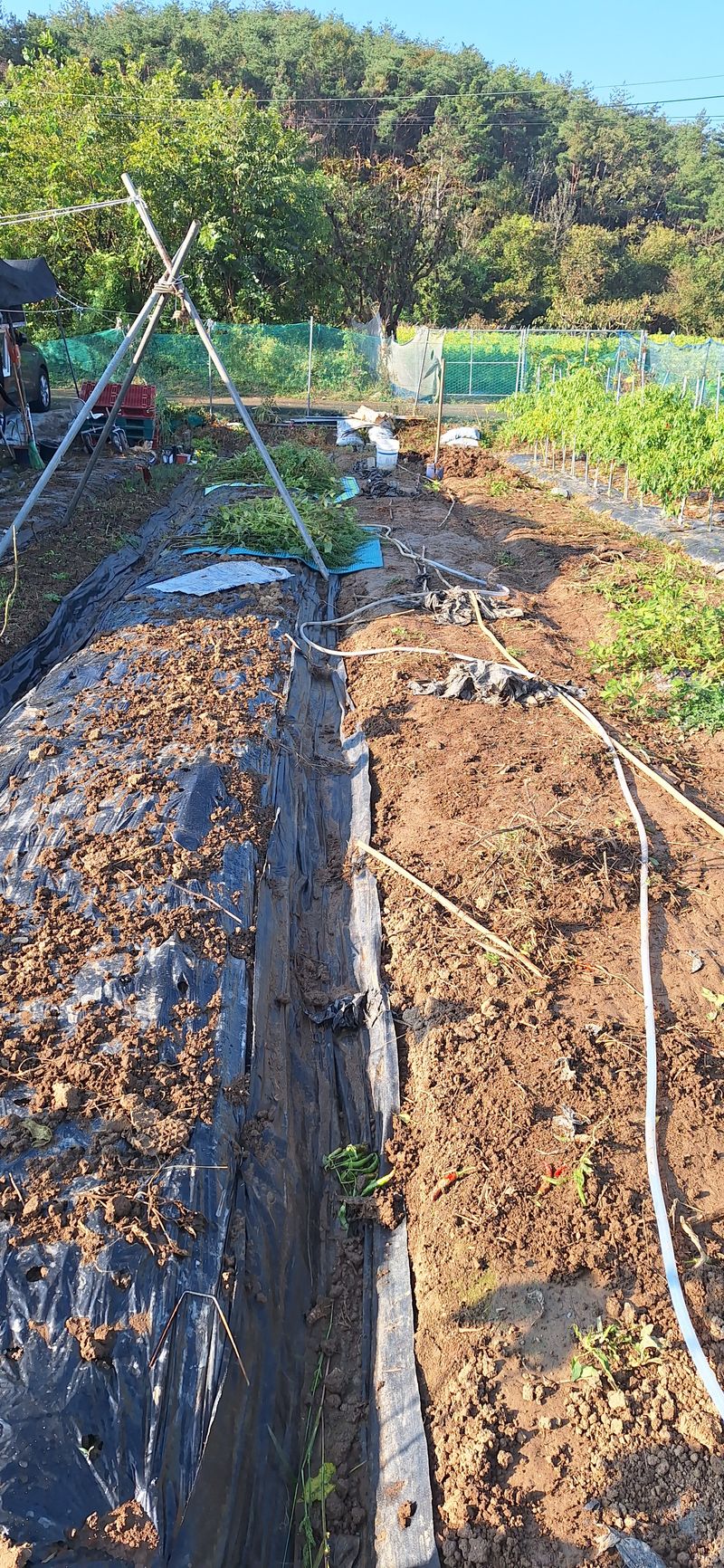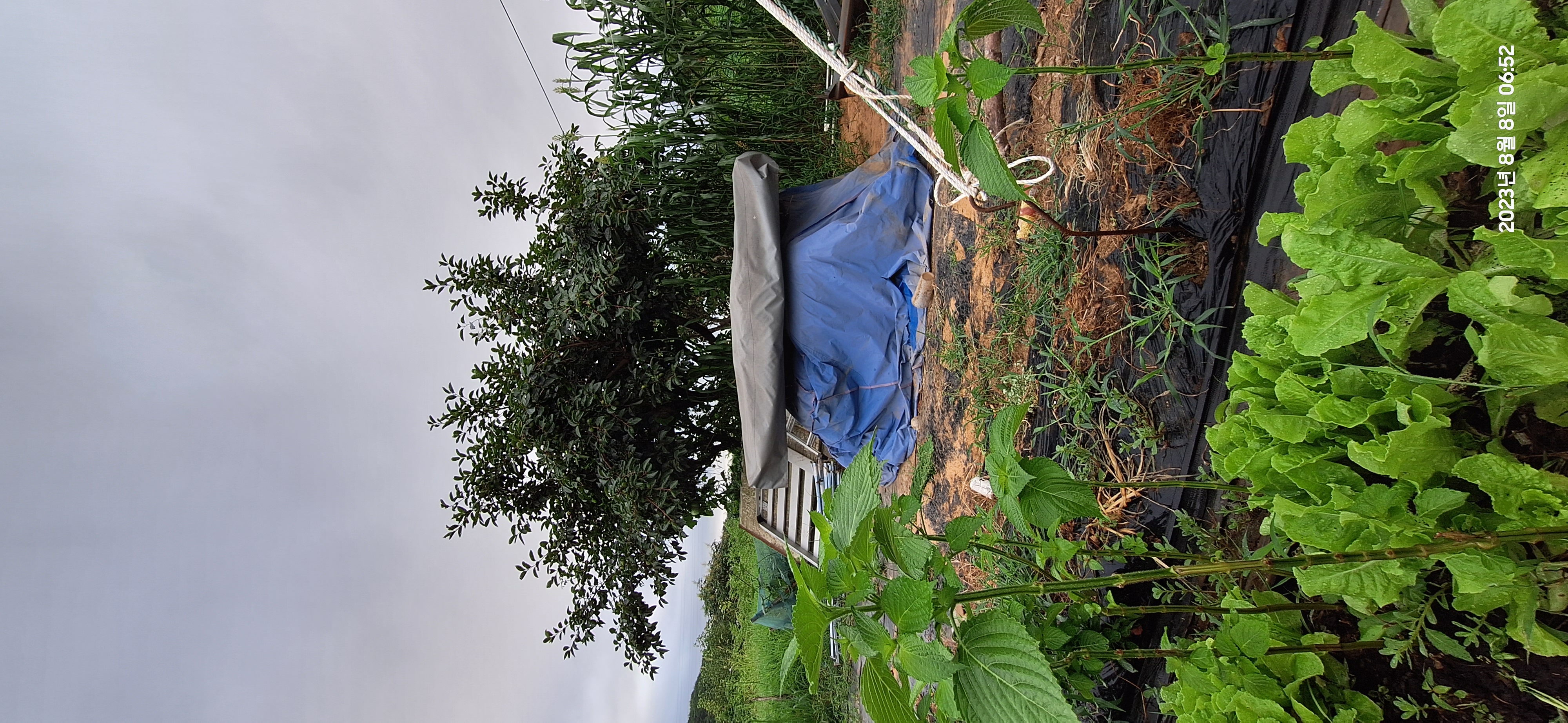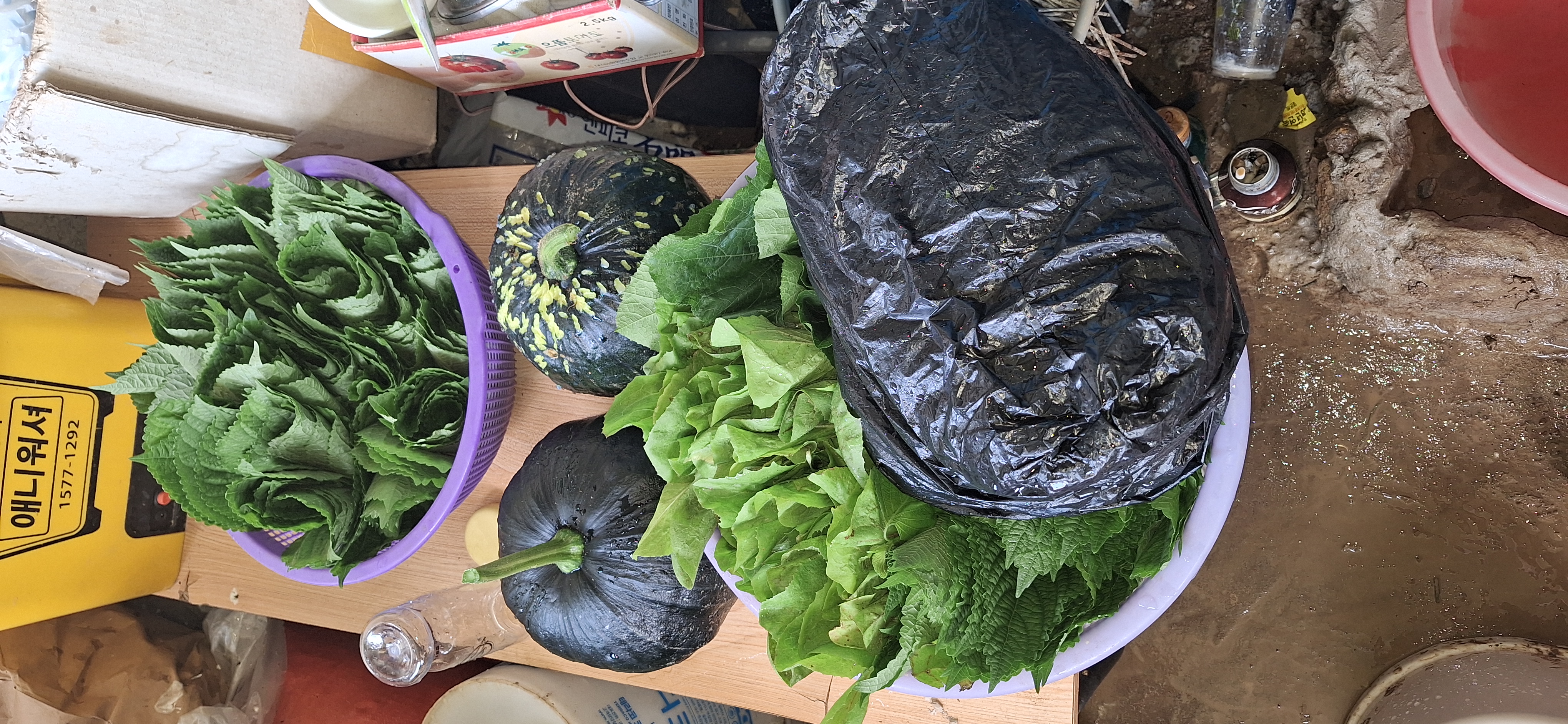 태풍으로 부러진 고추 정리 및 지지대 보강.. 조선호박 수확.가시오이 1개 수확 청상추에 닭 계분+커피찌꺼기 섞어 추비 뿌림
