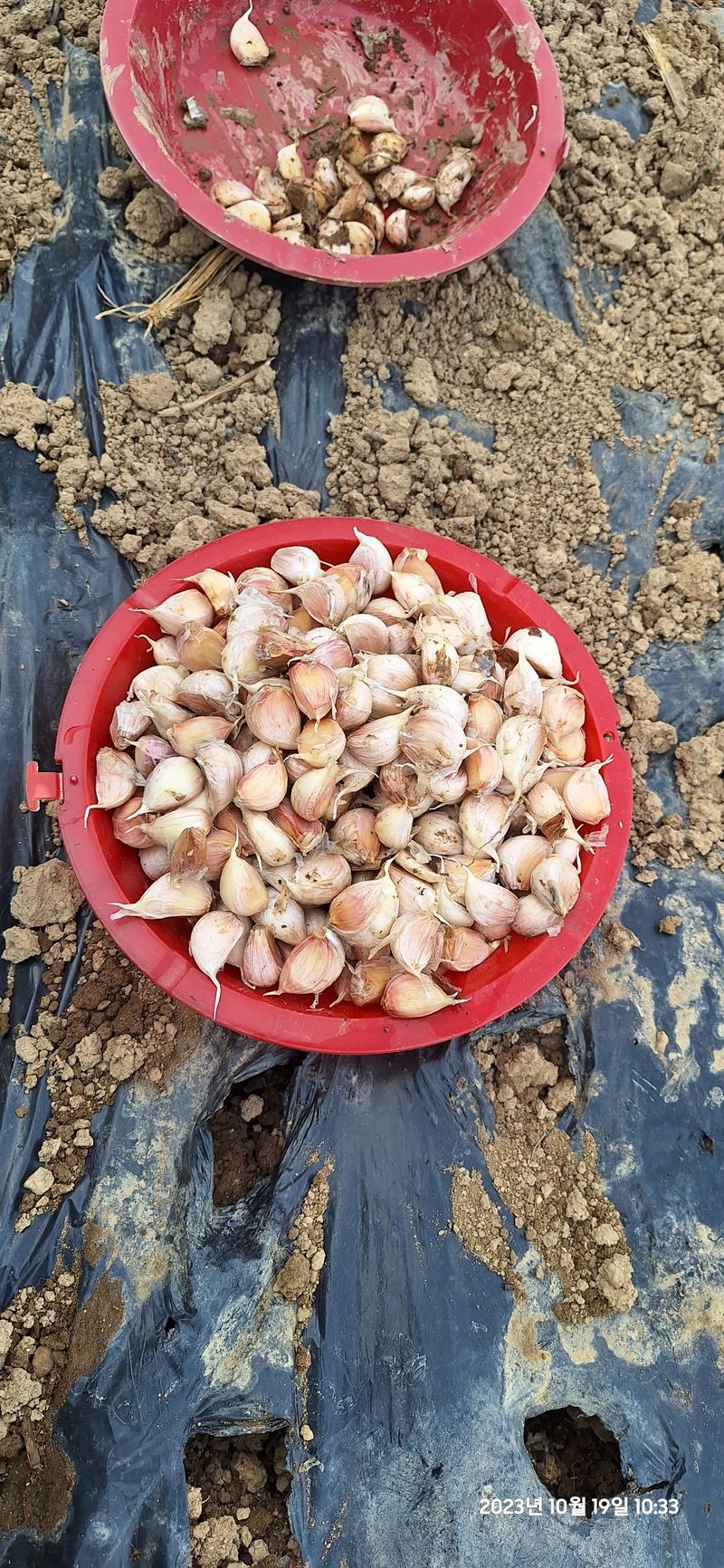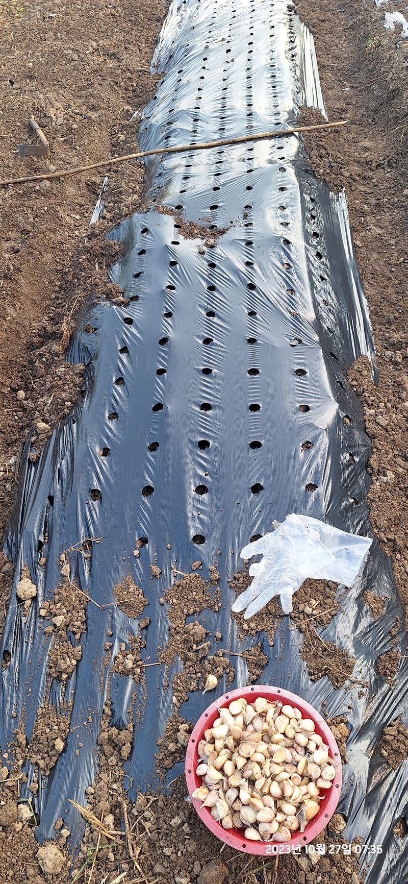 의성 육쪽마늘 추가로 심기 내년엔 구멍 간격20cm×20cm 유공비닐 쓰기