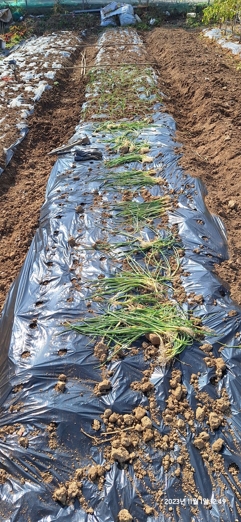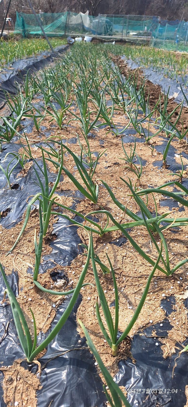 난지형 마늘, 만생종 양파 2차 추비 (슈퍼21 복합 비료) 대파 옮겨 심음