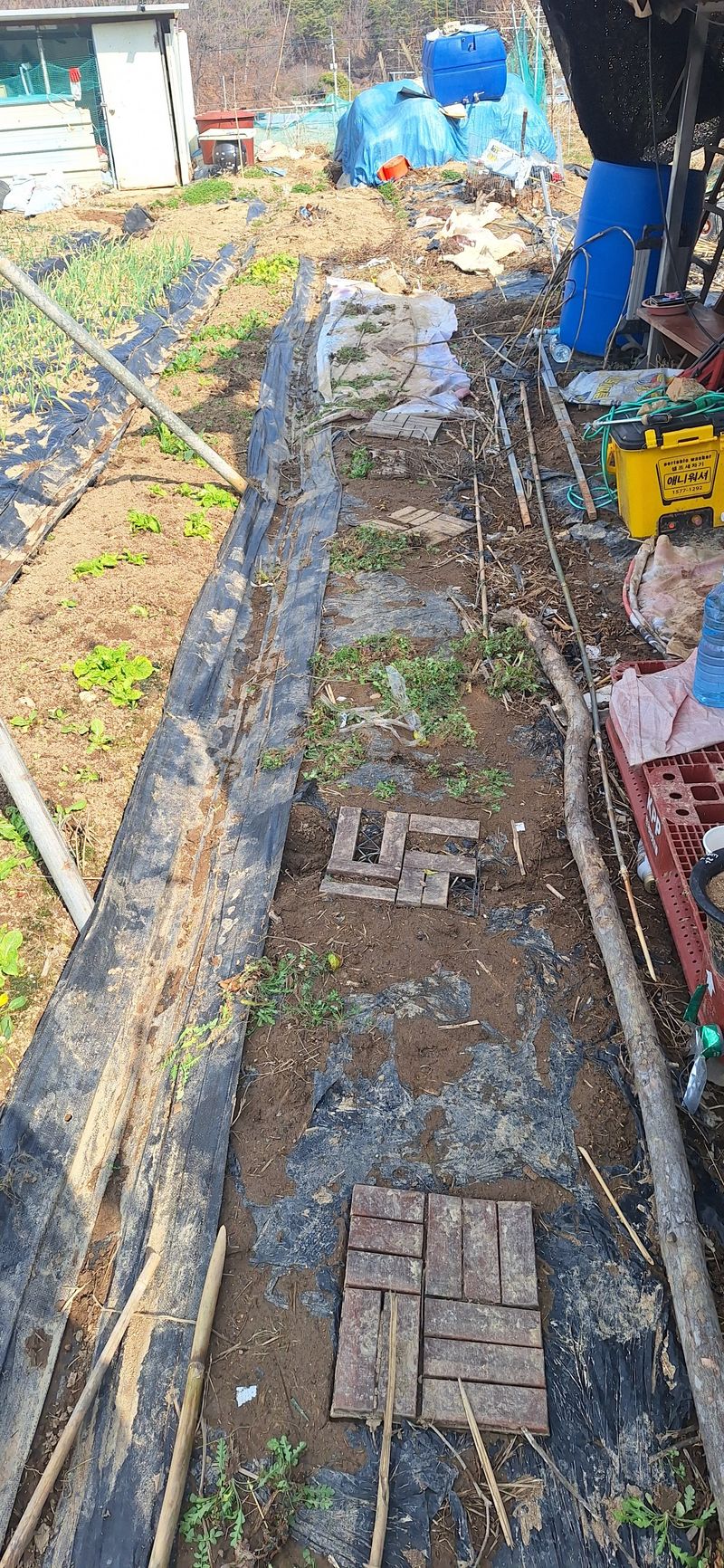 상추.쪽파 두둑 잡초제거 및 보온 비닐덮개 제거