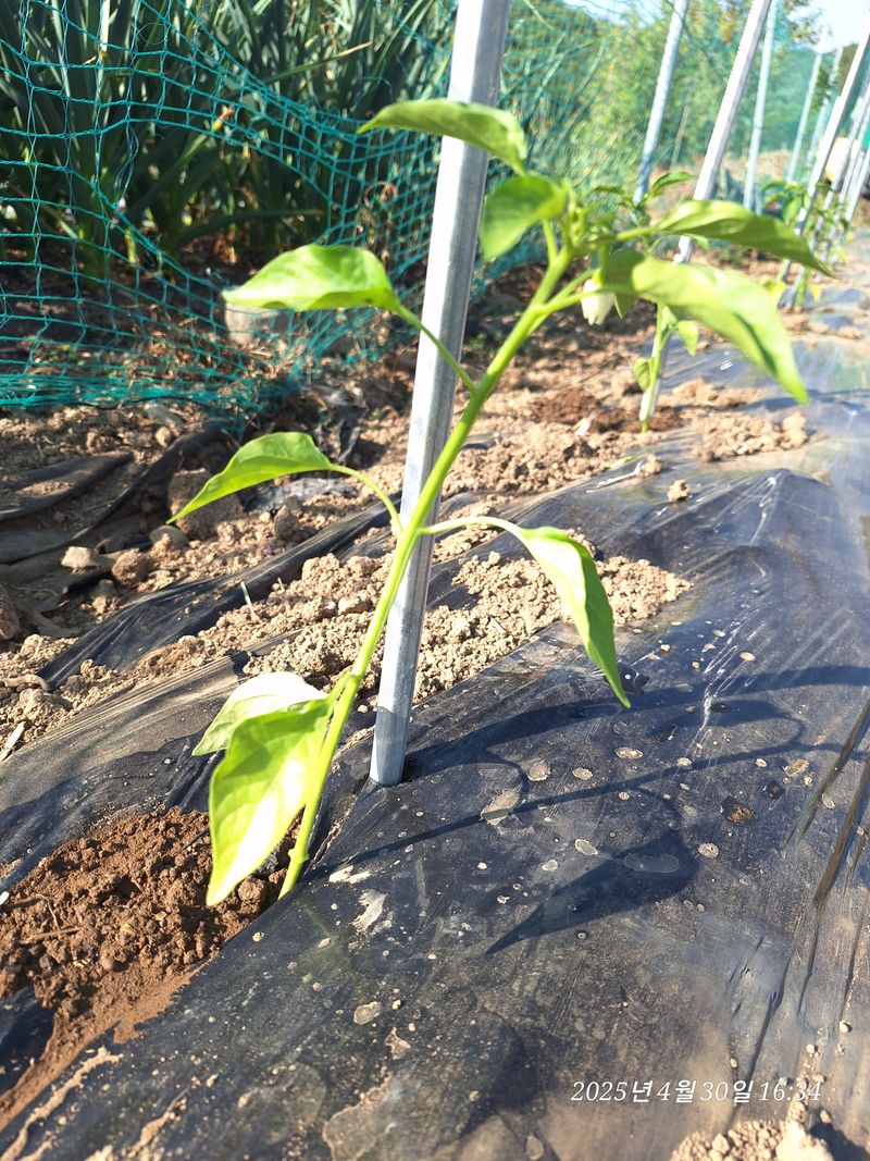 신품종 칼탄 조생 약간 매운 고추 54포기 정식 및 고추대 박고 묶기