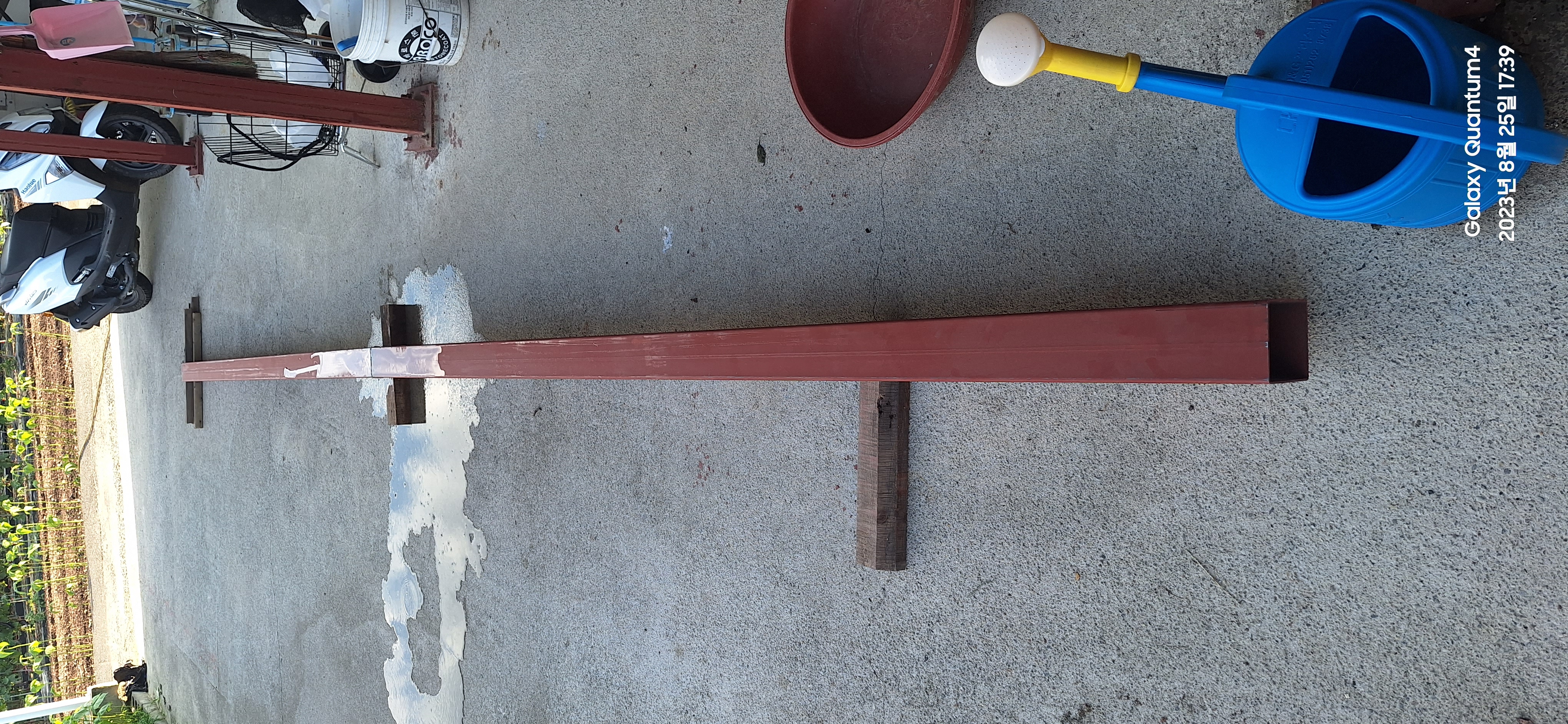 한전 계량기 신청 및 전기인입 지주대 100×100×6000mm 구입 .. 3m절단 운반 후 용접 .. 밭에 가져다놓음