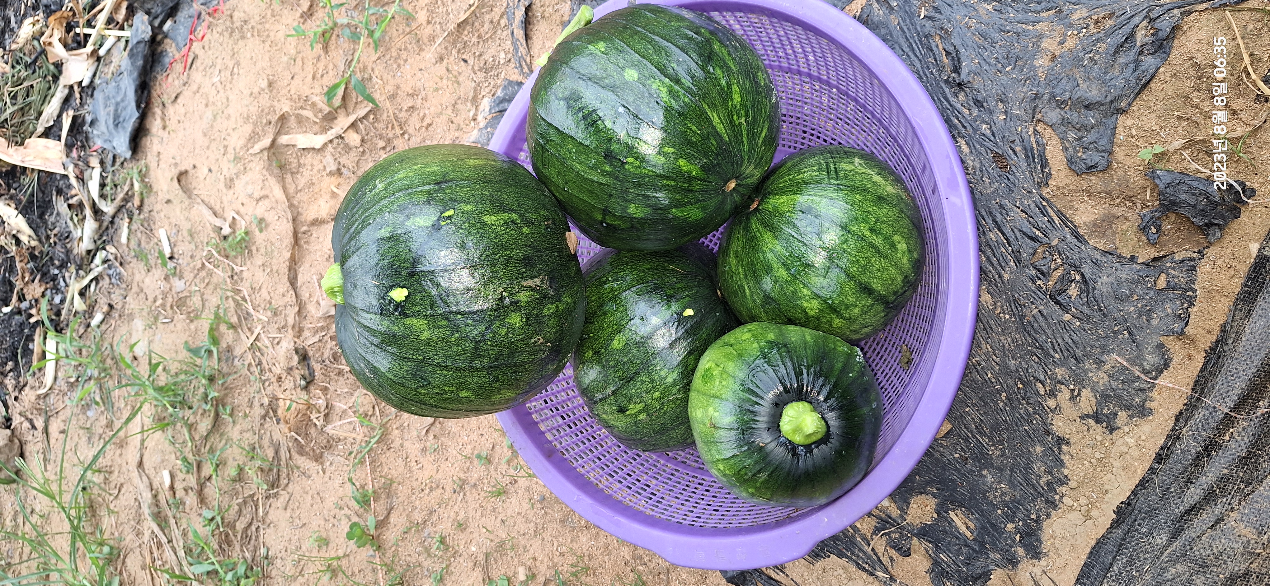 오이.호박 수확 밭에 물주기. 늙은 호박. 가지랑 물물교환