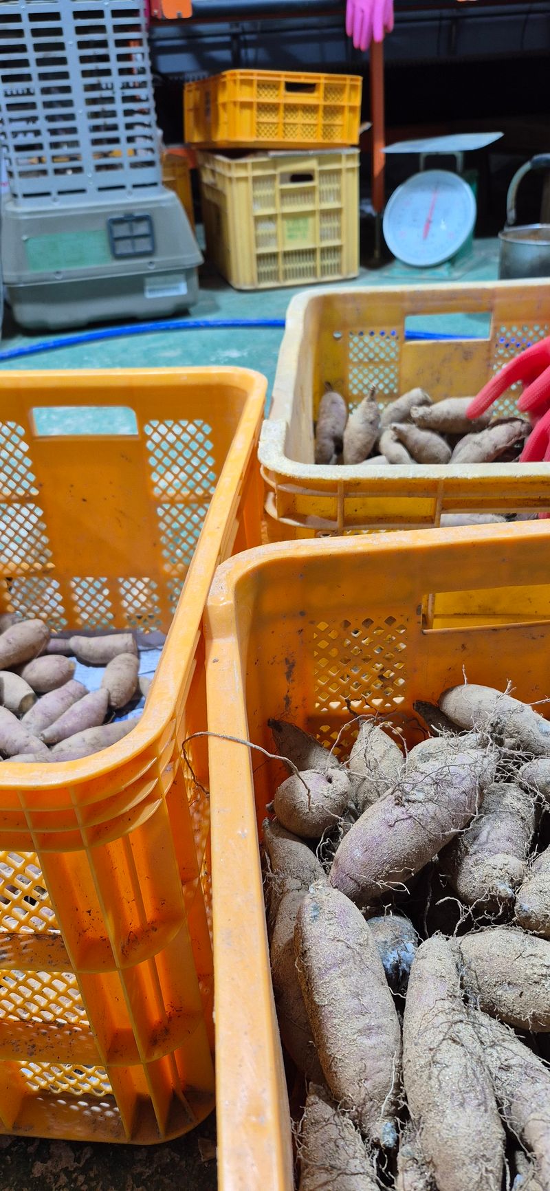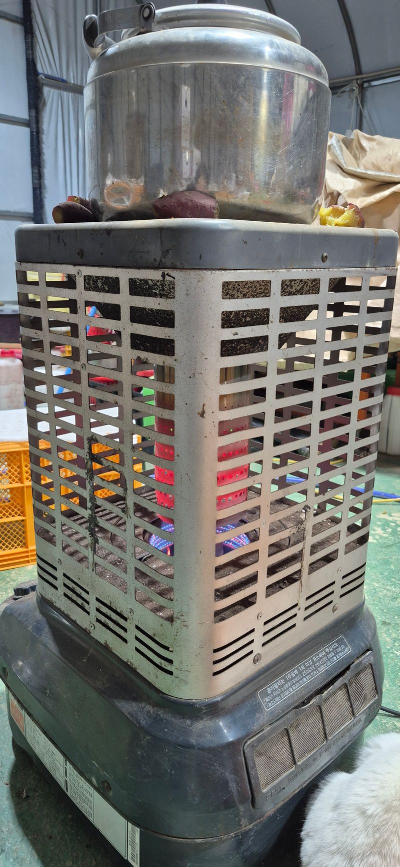 오늘은 난로를 켜놓고 고구마 박스작업을 하고 있습니다. 겨울철에도 주문이 많이 들어와 저장고에서 꺼내서 하고 있습니다.