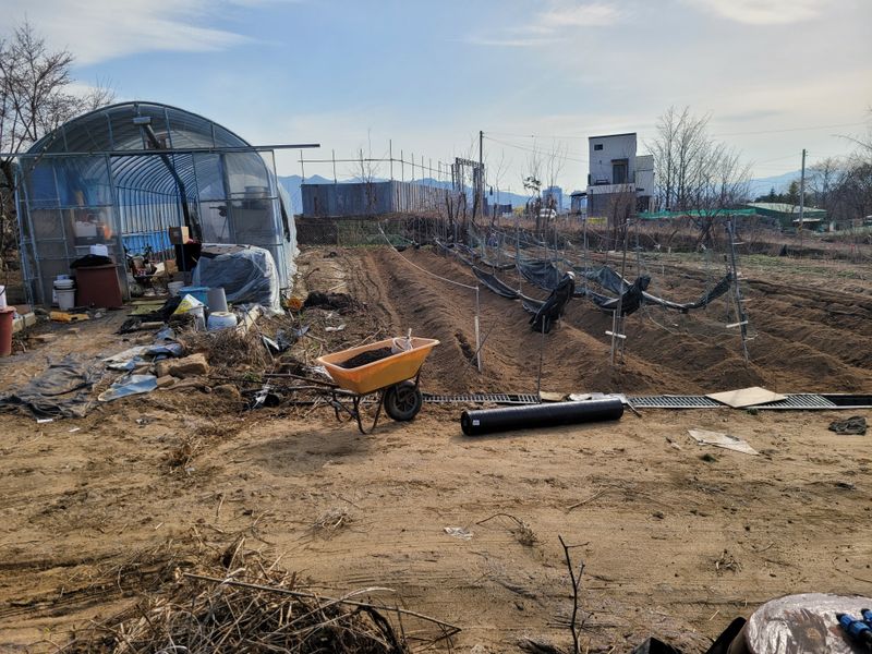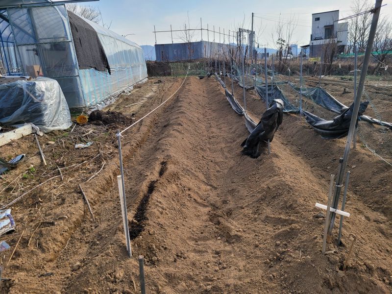고추 밭 하우스 재배 준비완성 점적호수 멀칭작업 준비