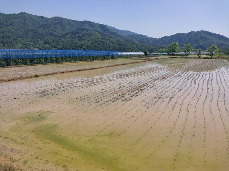 샤인 나동 가지 유도 작업 4명 4시간 모내기 완료 2명 1500평 5시간