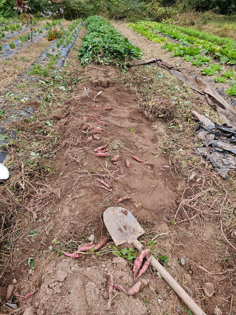 고구마.땅콩 일부 수확 무우밭 김메기및 집안둘레 꽃밭정리
