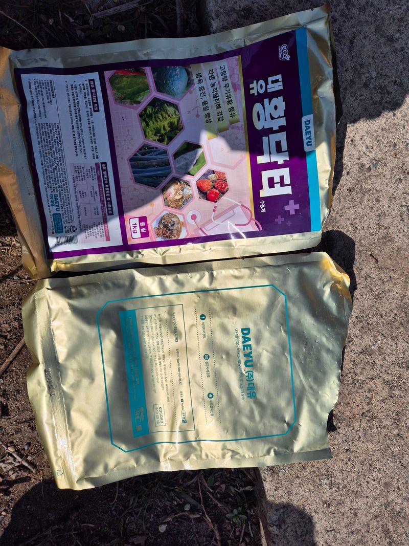 오늘 자두나무밭에 1회차대유 황닥터 처음약 하였습니다