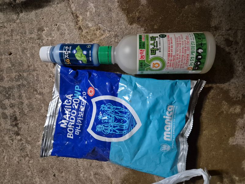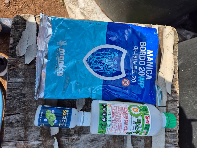 자두밭에 황약2봉지구입(현금구입)분무기에들어갈 구리스1통 오일1통(현금구입)
