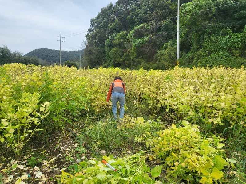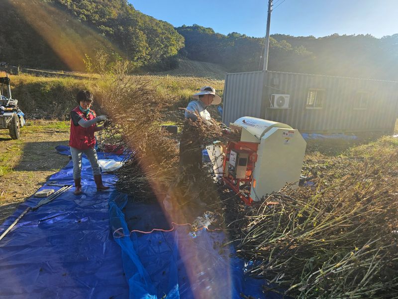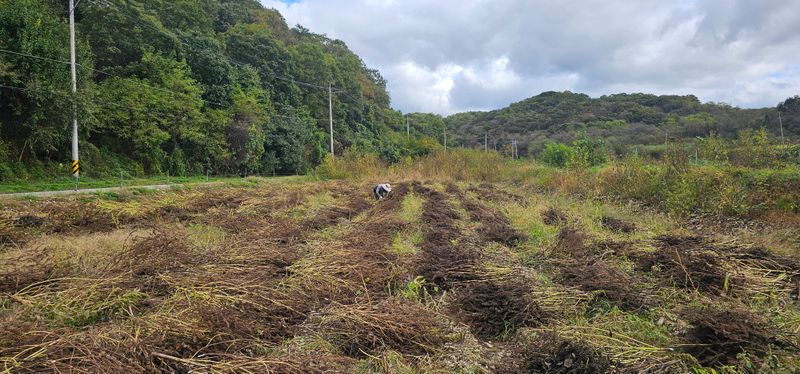 들깨 뒤집기 및 탈곡 작업준비
