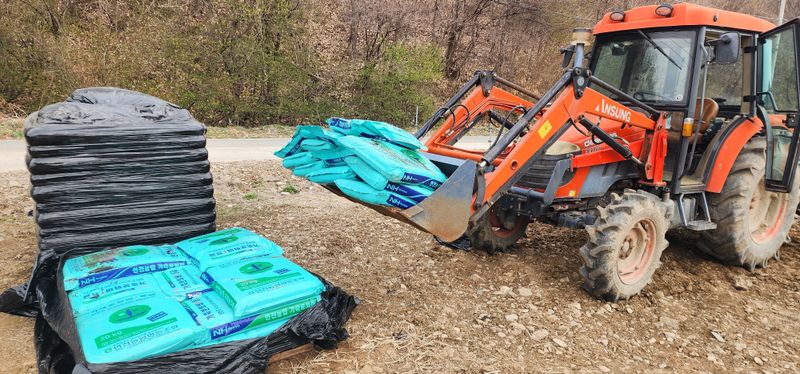 규산질 비료 살포 아랫논 63포 윗논 30포