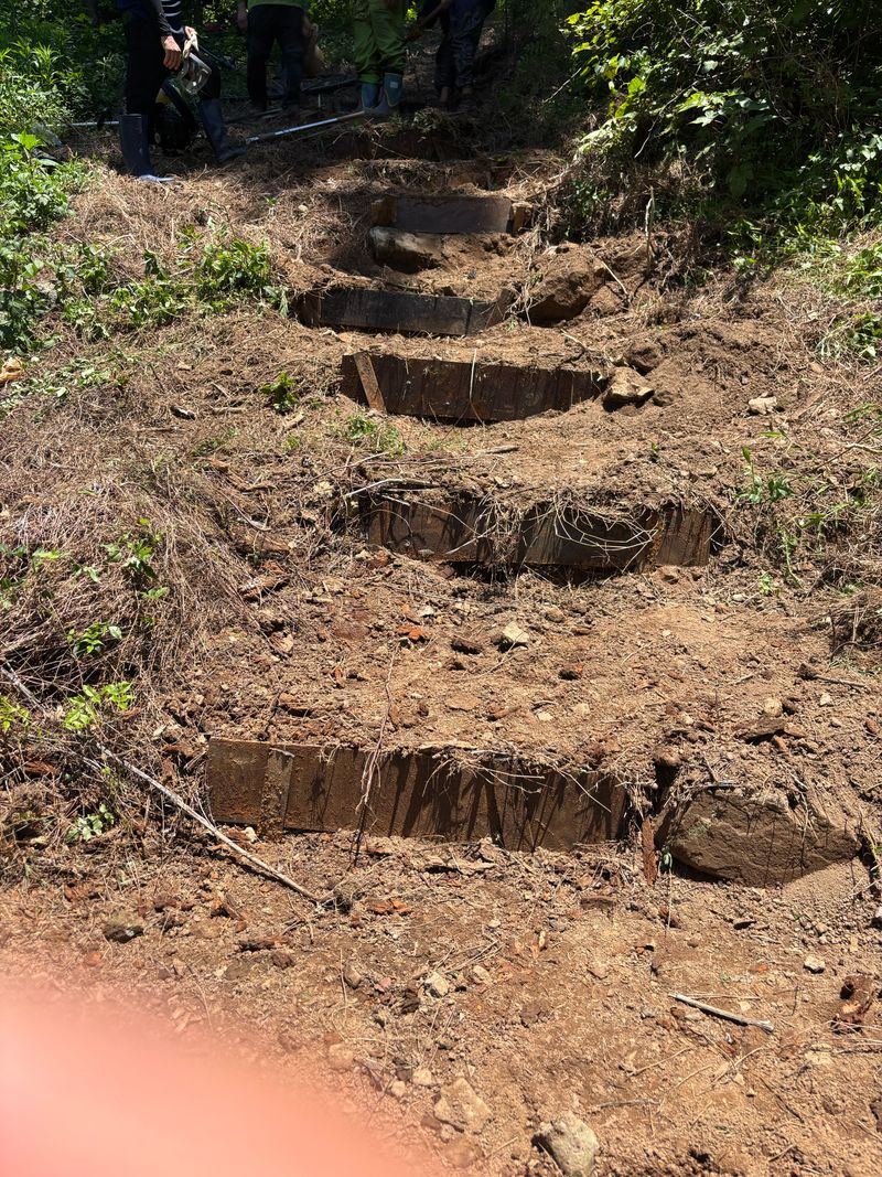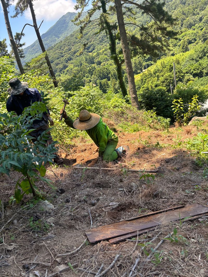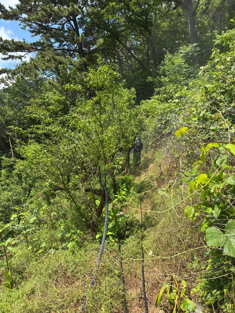 묘목 순이 올라오기 시작함. 많은 비로 내촐 고랑 물내려와서 관수설비 정비함. 고랑 공사로 흙탕물이 내려와 호수가 흙으로 오염됨. 농장 에도 물이 난내려와 문제가 잇나 산에 올라가니 별 문제는 없어보였으나 지꺼기 청소하고 정리하니 잘내려감. 모처럼 아내와 산에가서 정비...