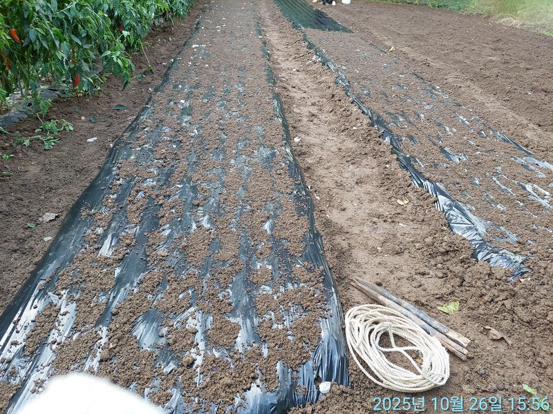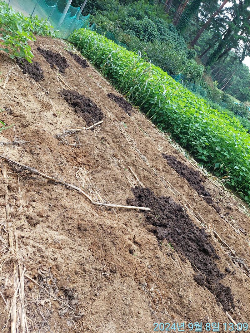 감자 심을려고 유기질 비료, 퇴비 넣었지요.