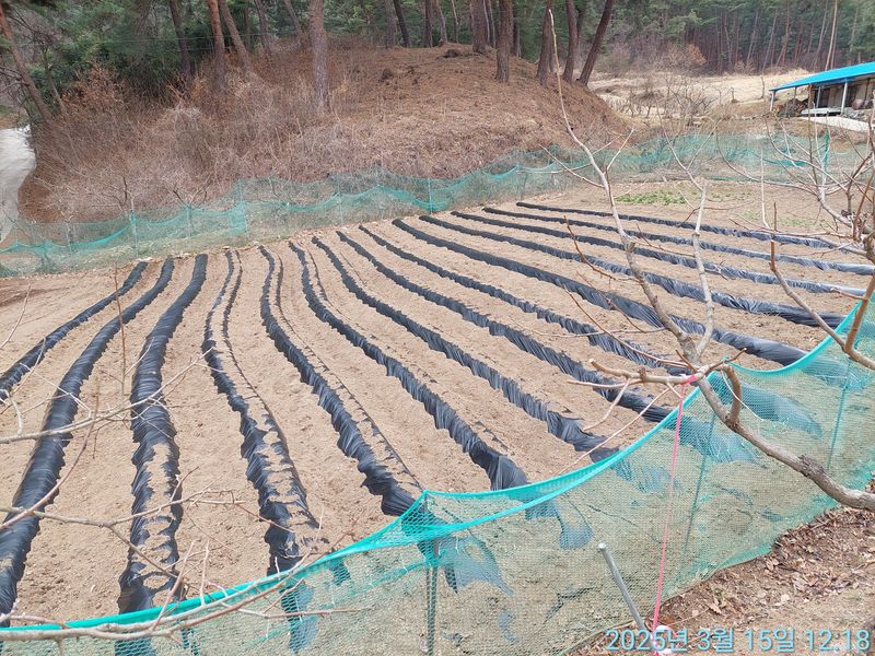 부직포 깔고 지주설치 했어요.