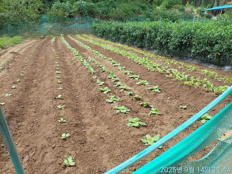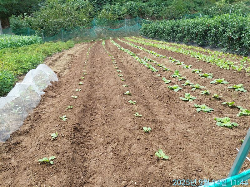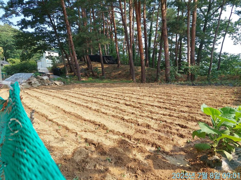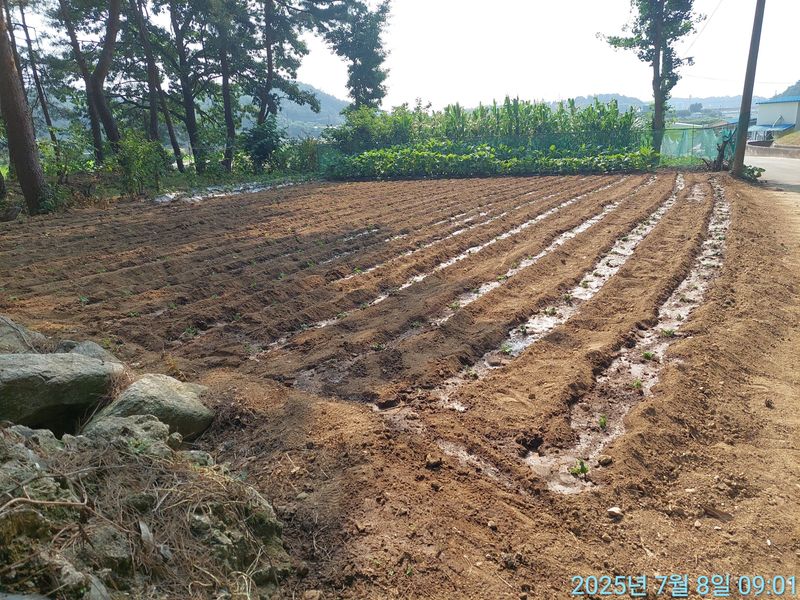 비 온다음 솎아 내고 북주다.