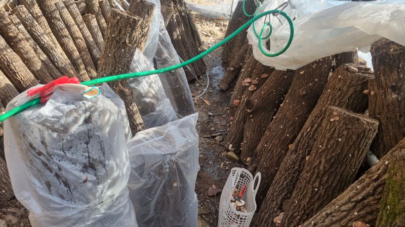 밤산1구간정리작업및두릅나무90나무보양. 버섯신청한판/530개,셋판/1590개산청15.000원 버섯1.5kg수확.