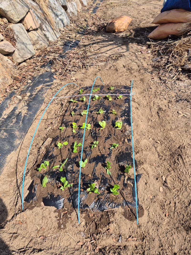 상추 모종 한판 72개 정식 감자 식재 미생물 영양제 살포: 마늘 양파 파 딸기 상추 냉이 고들빼기 수확