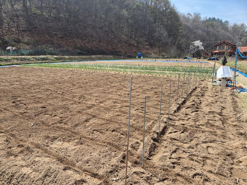 마늘 nk칼슘 살포 고추밭 로터리 삽주 이식 아스파라거스 부직포 터널 작업 삼동파 부직포 터널