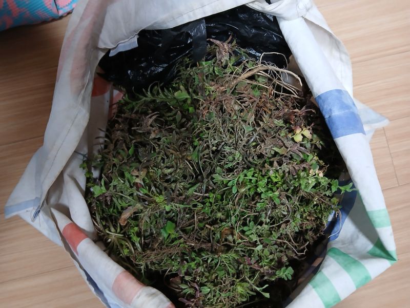 감자 2이랑 심음 냉이 채취 600g씩 5봉지 경로당에 나늠