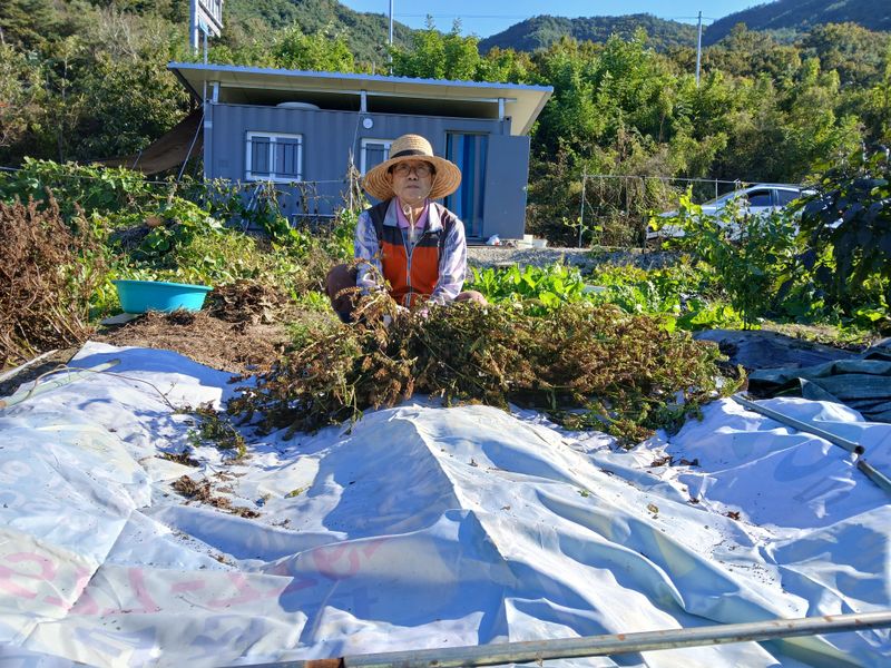 땅콩 꽃이 피어서 비닐 벗겨줌