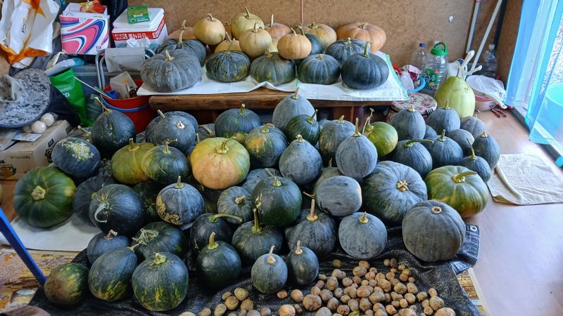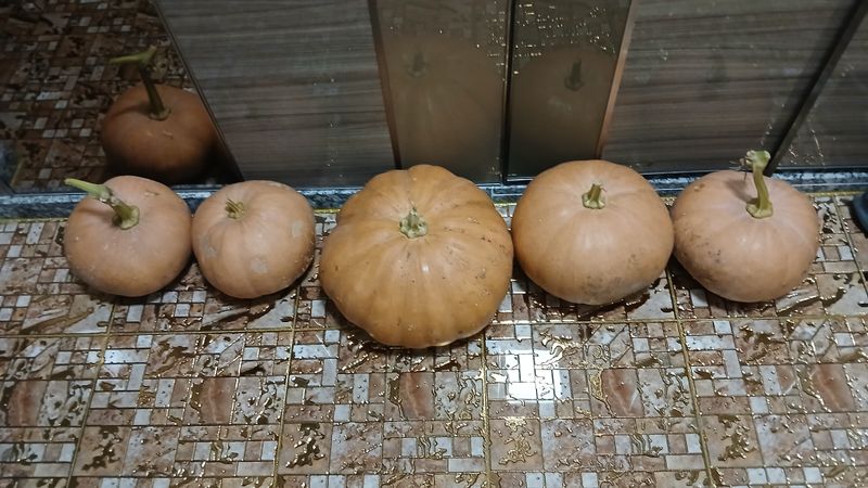 호박 수확 늙은 황호박. 20개 청호박 익은 것, 덜 익은 것 합 85개