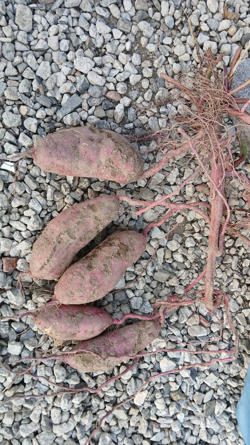 고구마 캐기 3~4일 소요 너무 크고 깊이 들어가서 캐기가 어려웠다. 1개가 2kg 나가는 것도 있다. 고구마순을 수시로 많이 잘라서 볶아먹었다.