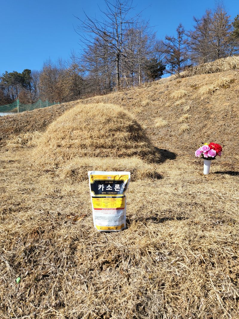 부모님 산소에 잔디는살고 잡초발아 억제제 살포 했어요