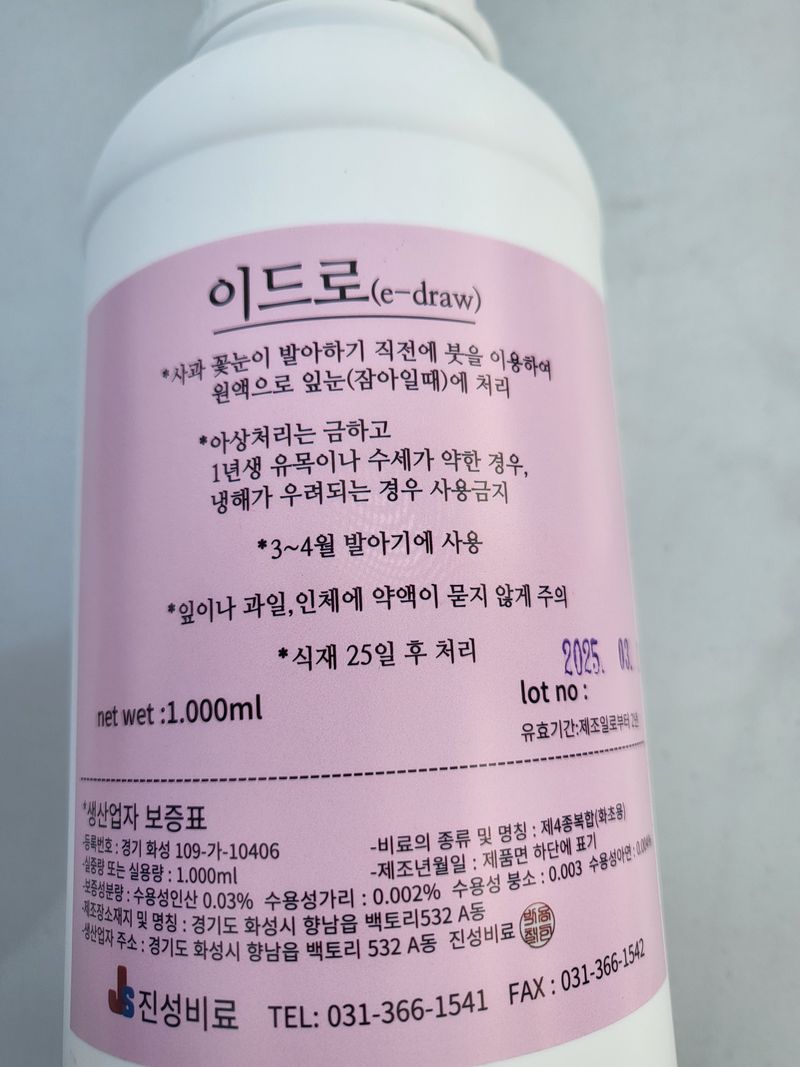 개화전 농약살포함 400리터 베푸란 500씨씨 코모란250 대유붕산 500그램 대유나르겐 500그램 혼용살포함
