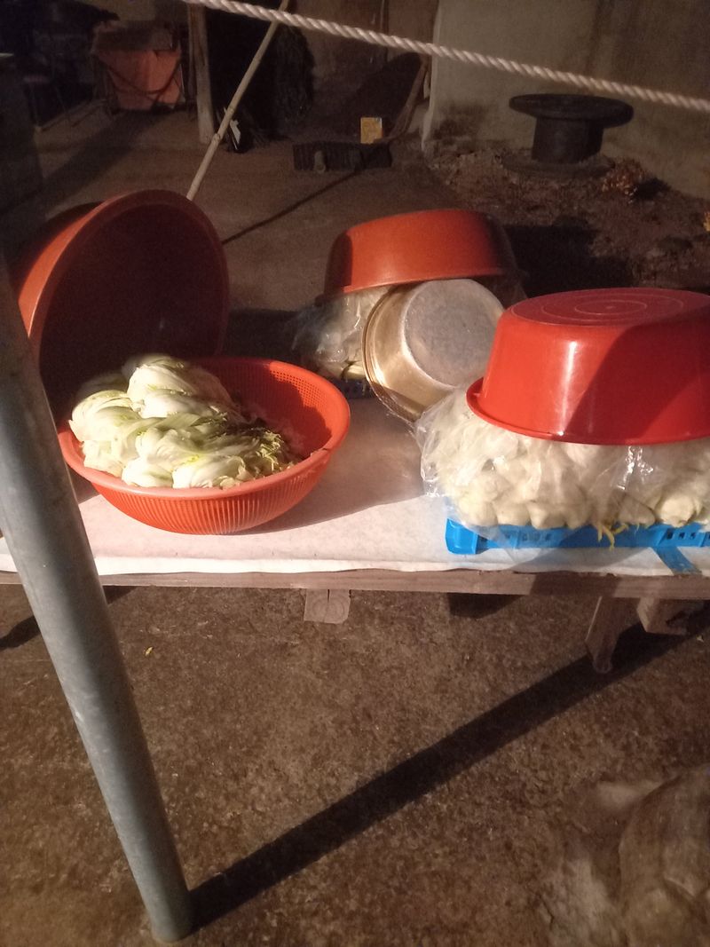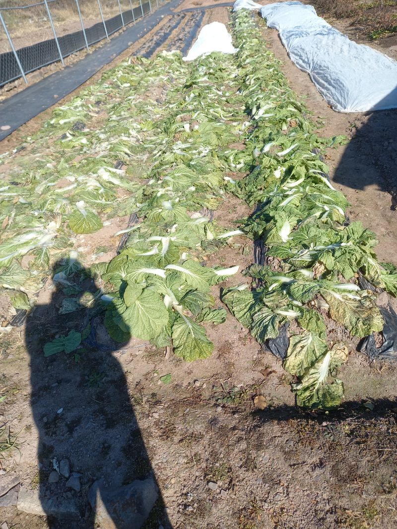 김장할려고 배추를 뽑아 절였다 60포기 양배추도 전년보다 잘 .컷다 이것도 뽑앗다 겨울초도 베고 부직포로 덮었다 마늘도 부직포로 덮었다