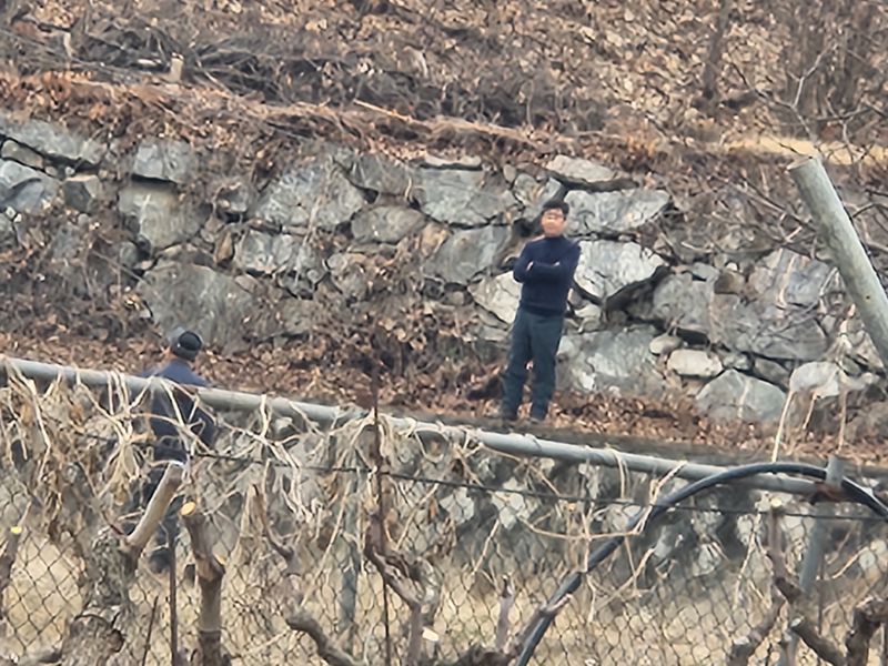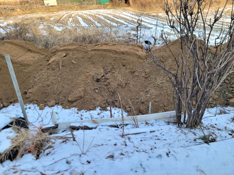 간밤에 눈이 휘날렸다. 대지를 덮을 정도이고 그래 춥지가 않은 성탄절입니다. 창고 난로에 불을 짚이고 평상시 처럼 닭모이를 주고 나서 창고 주변의 잔나무들을 짜르고 청소를 하였다. 어제 대추밭에 흙을 5차받았는데 평탄작업까지 해주셨다. 귀농한 젊은부부에 감사하다. 개군...