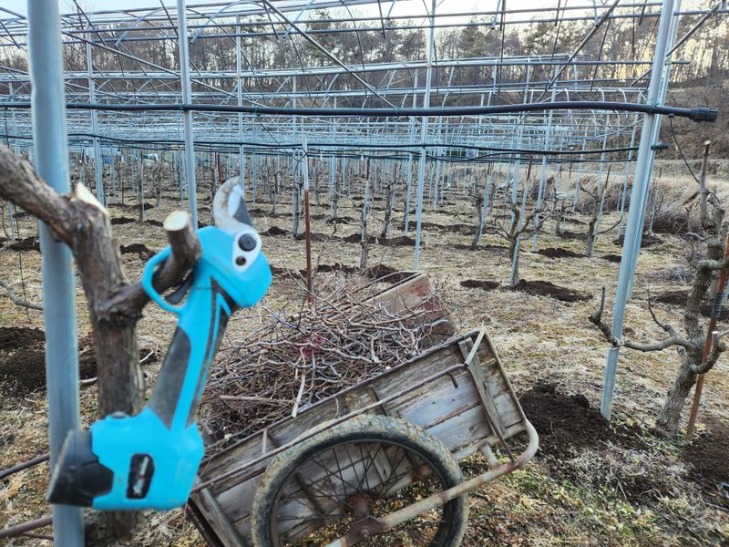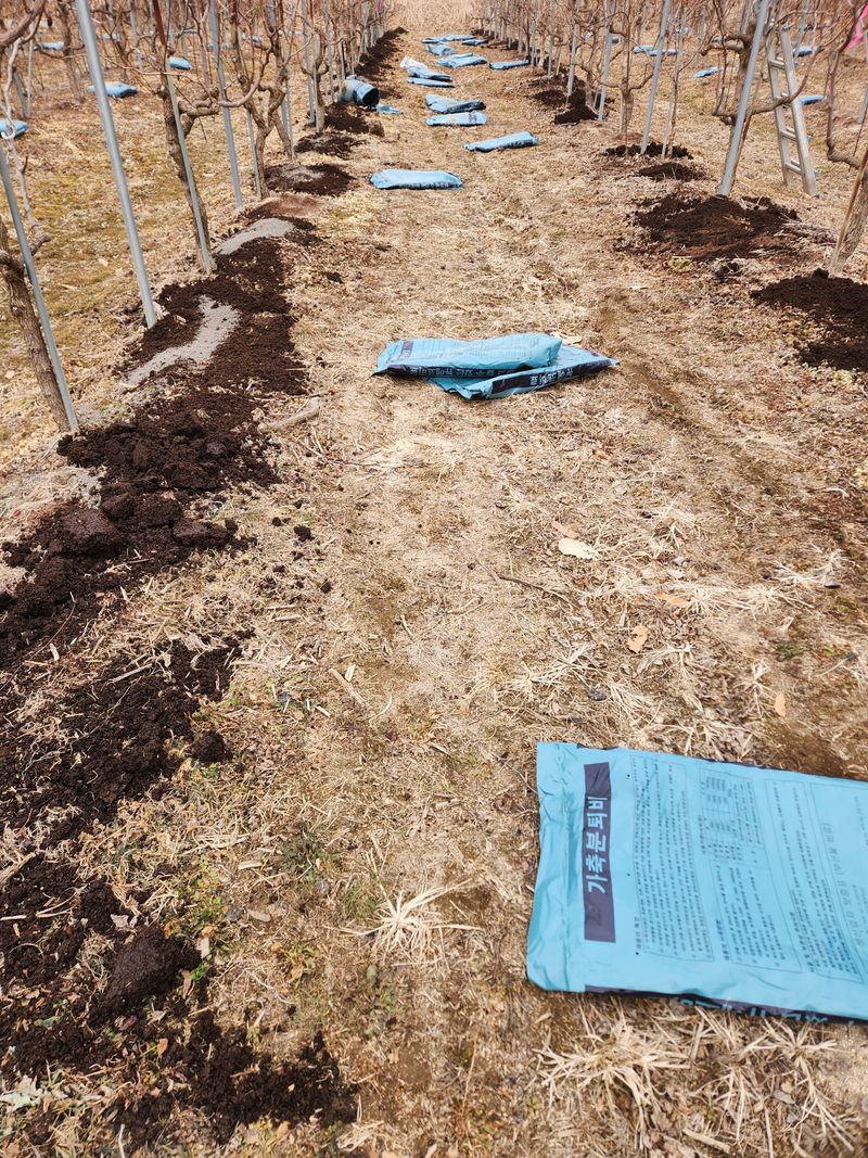 대추나무 전지는 끝내고 퇴비를 냈다. 날씨가 쌀쌀하지만 일하기는 좋다. 500여주의 나무에 우선 축비를. 깔기 시작했다.