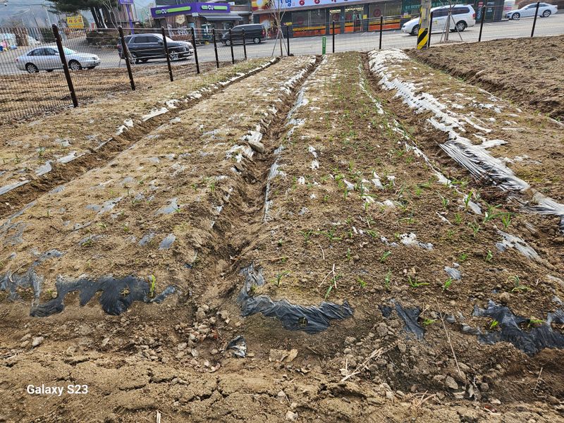 눈비살짝옴 마늘 풀뽑고 흙돋아줌