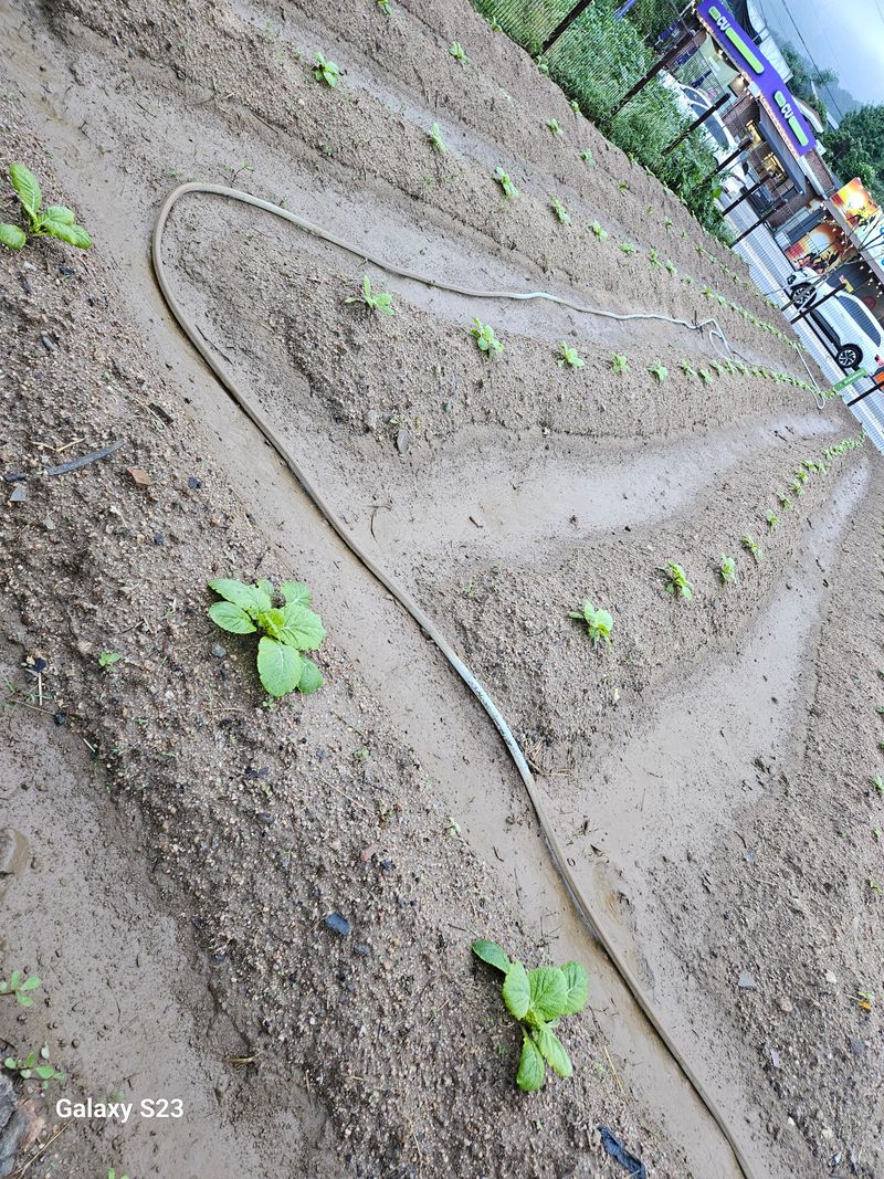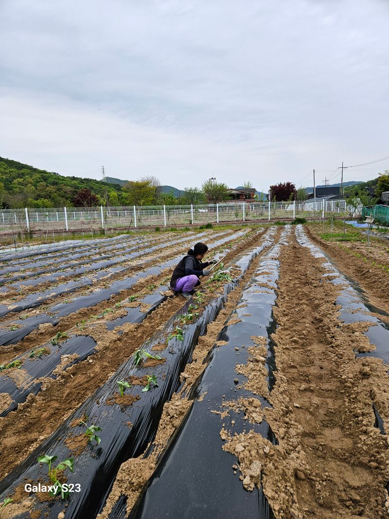 강화가서 밤고구마땜방용2단 오이 수박 참외 가지 모종심음 참깨 싹 안 난곳에 직파로 씨뿌렸슴