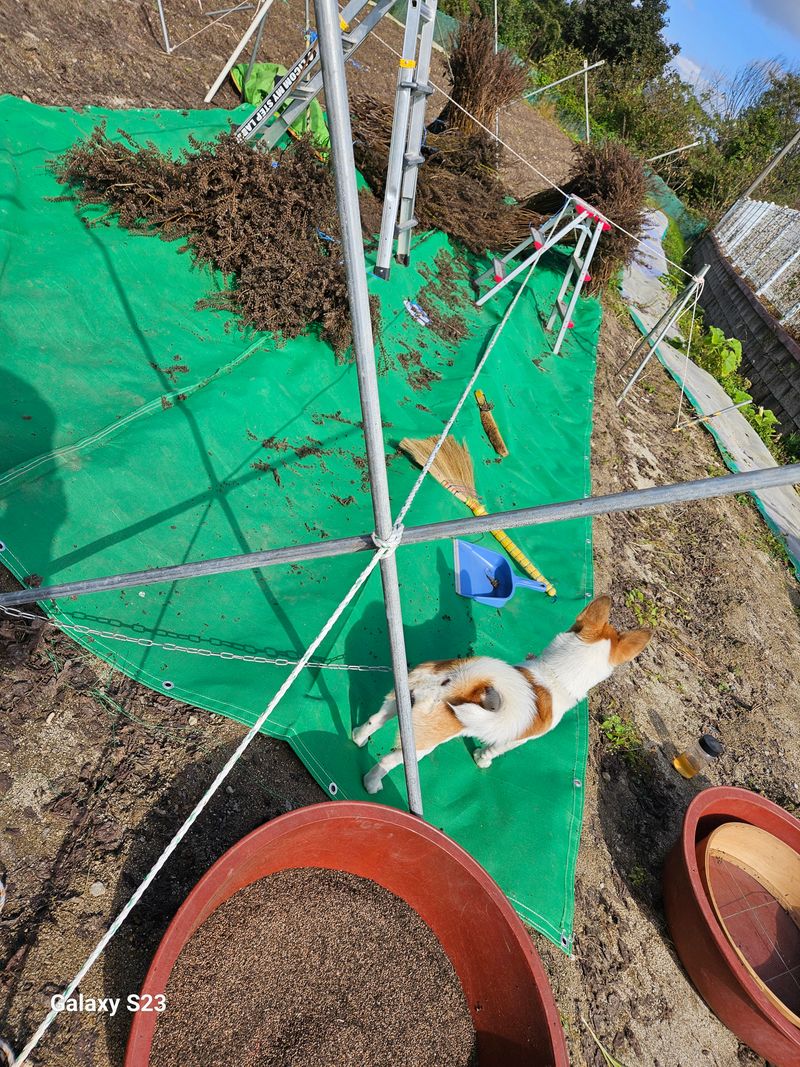 비닐걷고 토양소독약치고 복합비료휙휙뿌려주고 낼 비온다기에 계분거름 옮김 너무힘들다