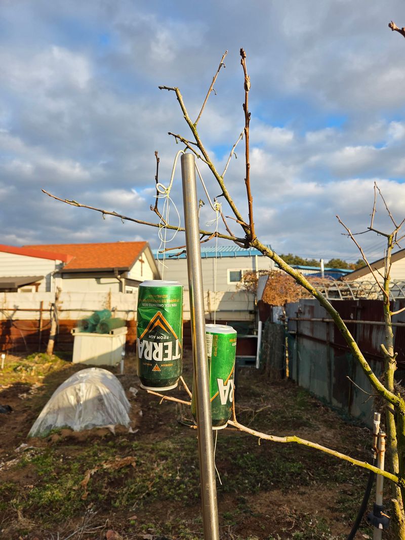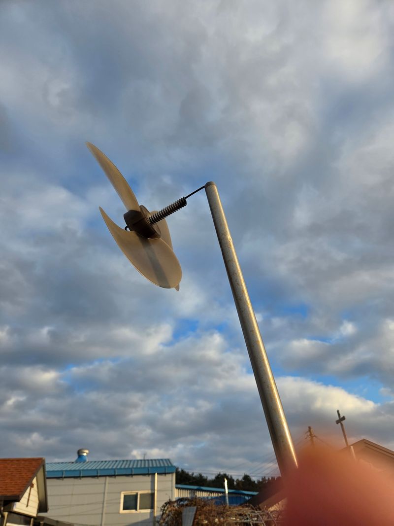 두더지 도망가라고 선풍기 날개와 맥주캔을 활용해 보았습니다 바람 불때만 효과가 있겠네요