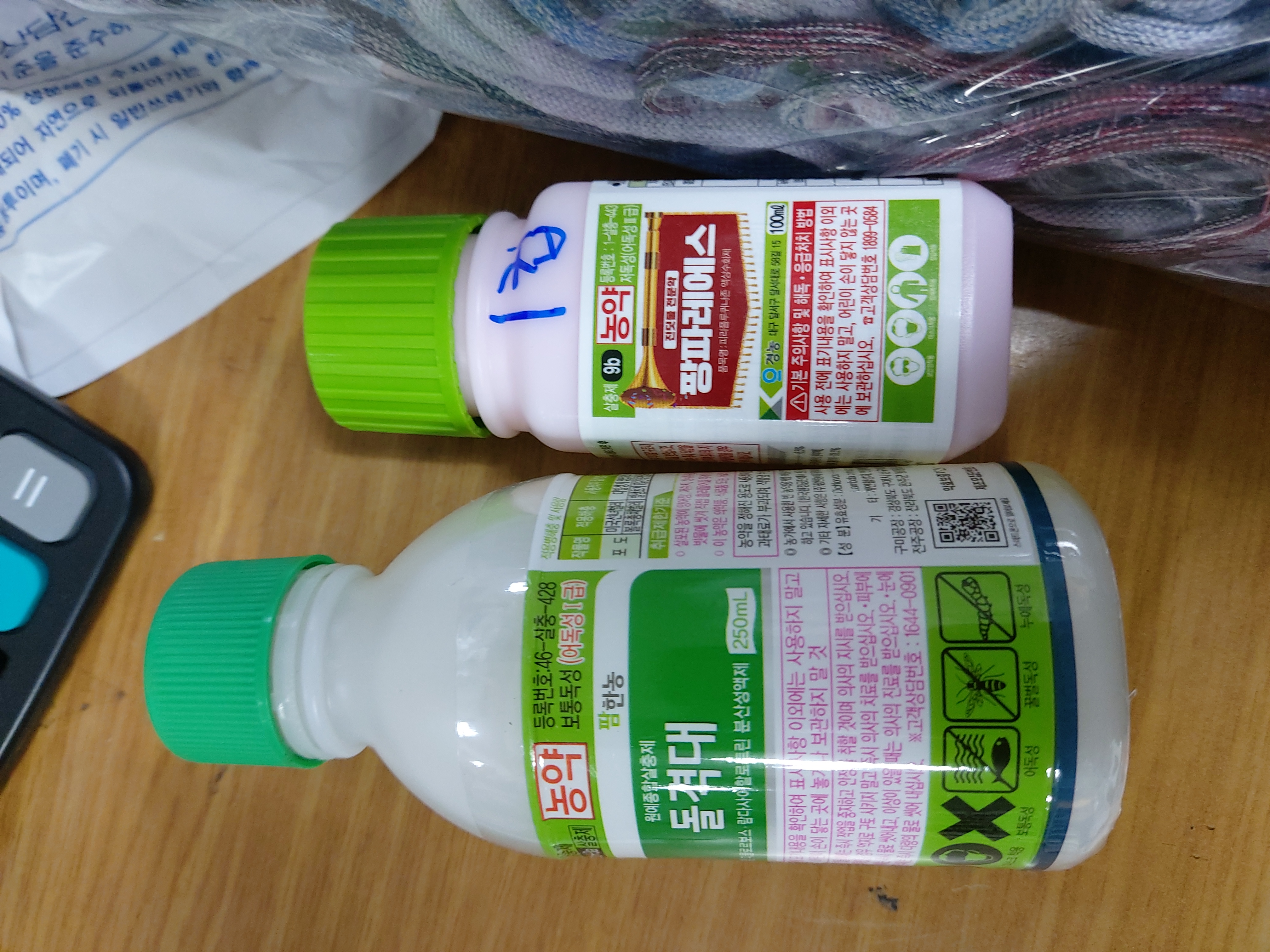 ■ 포도밭 위쪽부터 금년도 3차로 포도 옆면 살포함. 20L 수동 분무기로 3통 살포함(18:20~20:00) ● 1. 세베로유제 500ml 물 20리터당 1뚜껑 ● 2. 톱신엠수화제 500g 물 20리터당 2수저 ● 3. 라조민 100ml 물 20리터당 1뚜껑 ...