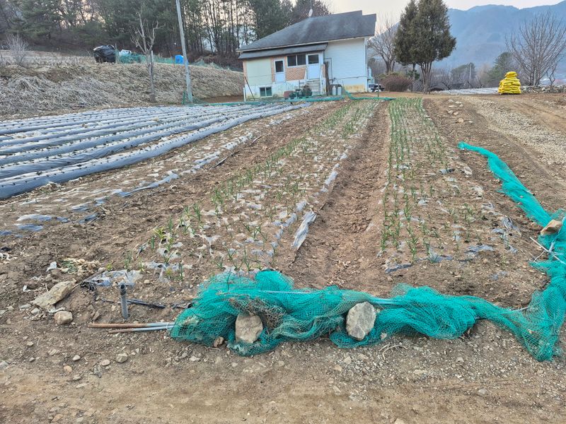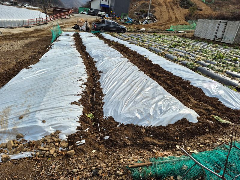 내년에 먹을 마늘 5접 심고 보온으로 비닐덮기 완료