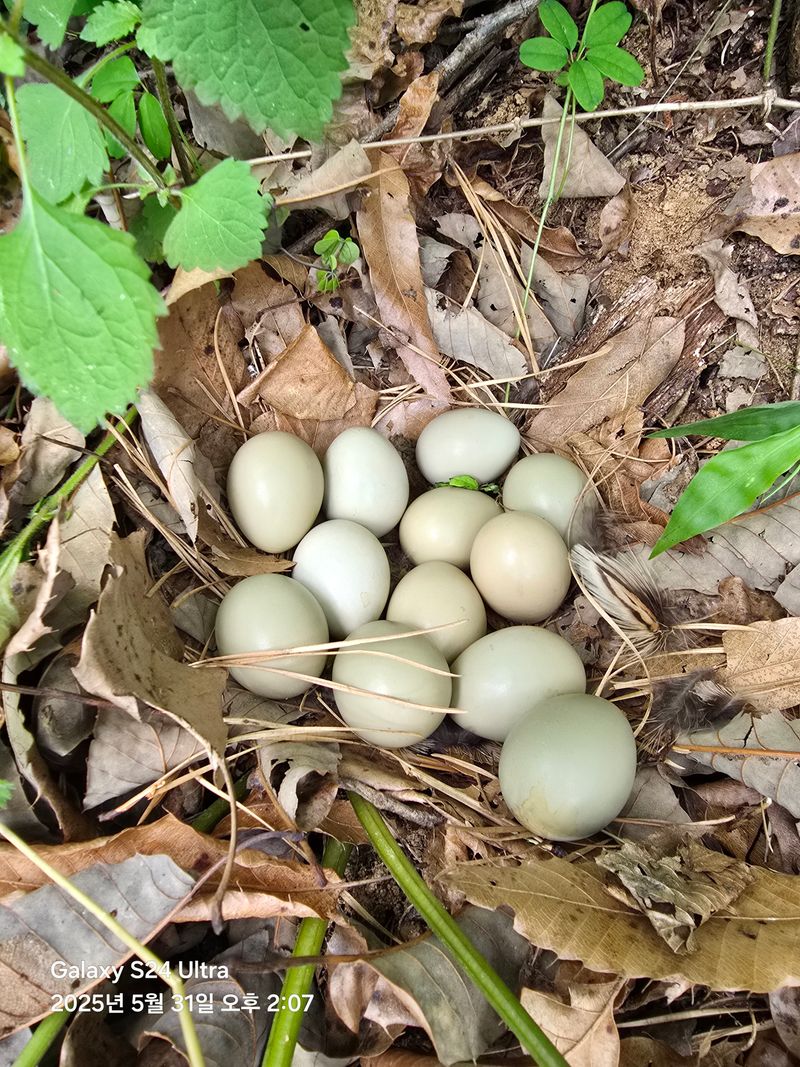 고사리밭 풀베는 과정에서 꿩 알을 발견 무려 알12개나되네요.